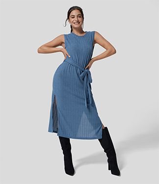 Vestido lencero informal de lino, holgado, midi, con lazo delantero