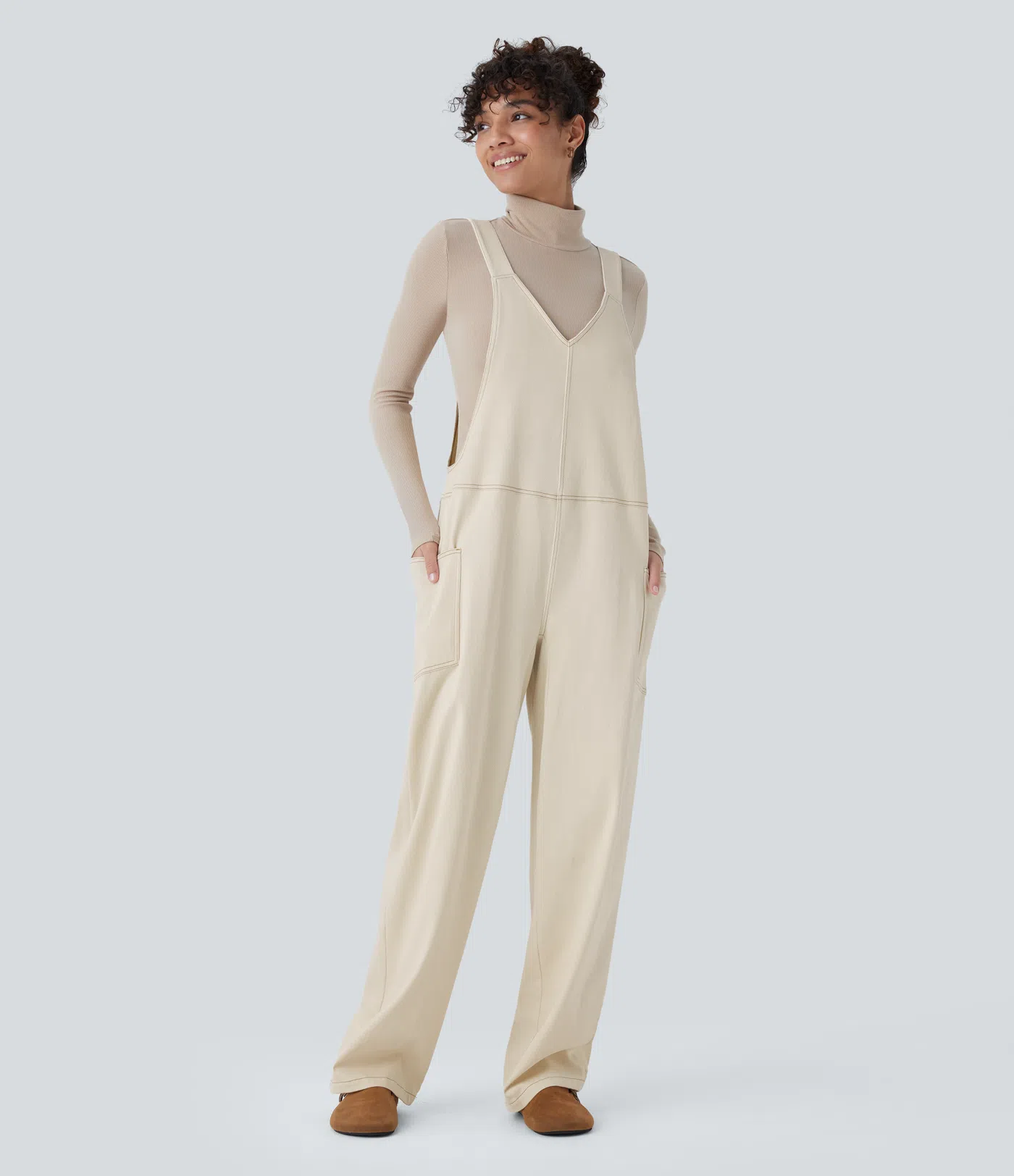 Halara Flex™ V Neck Pocket Washed Denim Casual Overalls