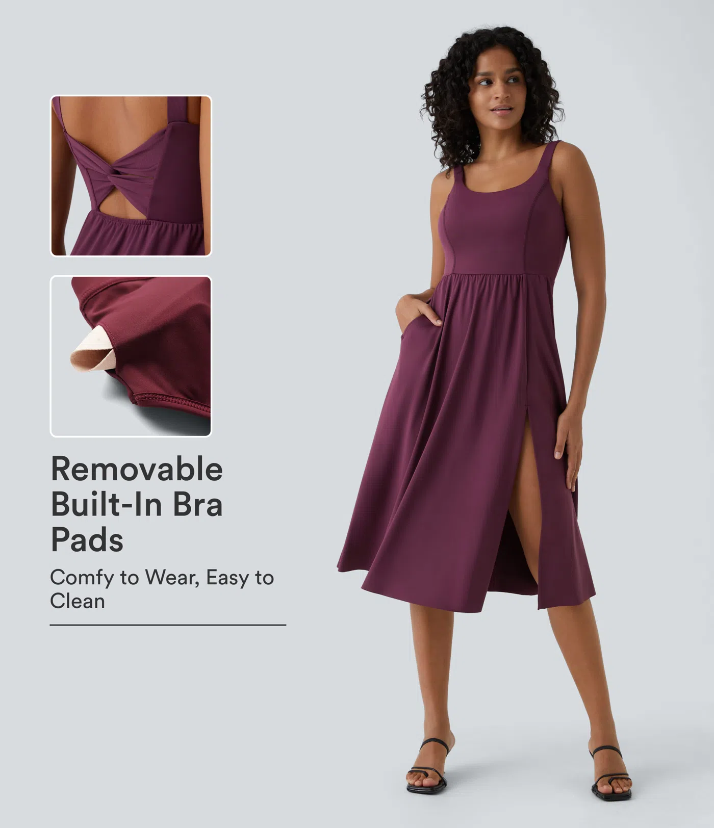 Gepolstertes, rückenfreies, verdrehtes Midi-Freizeitkleid mit Schlitz