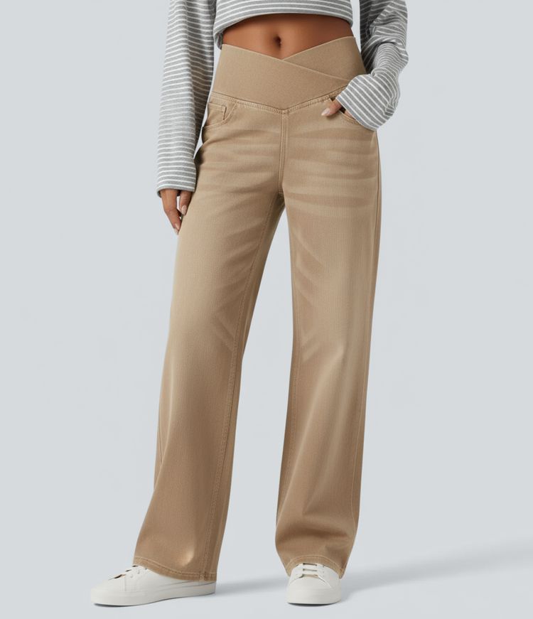 Halara Flex™ asümmeetrilised madala vöökohaga sirge säärega pruunid vabad teksad taskutega