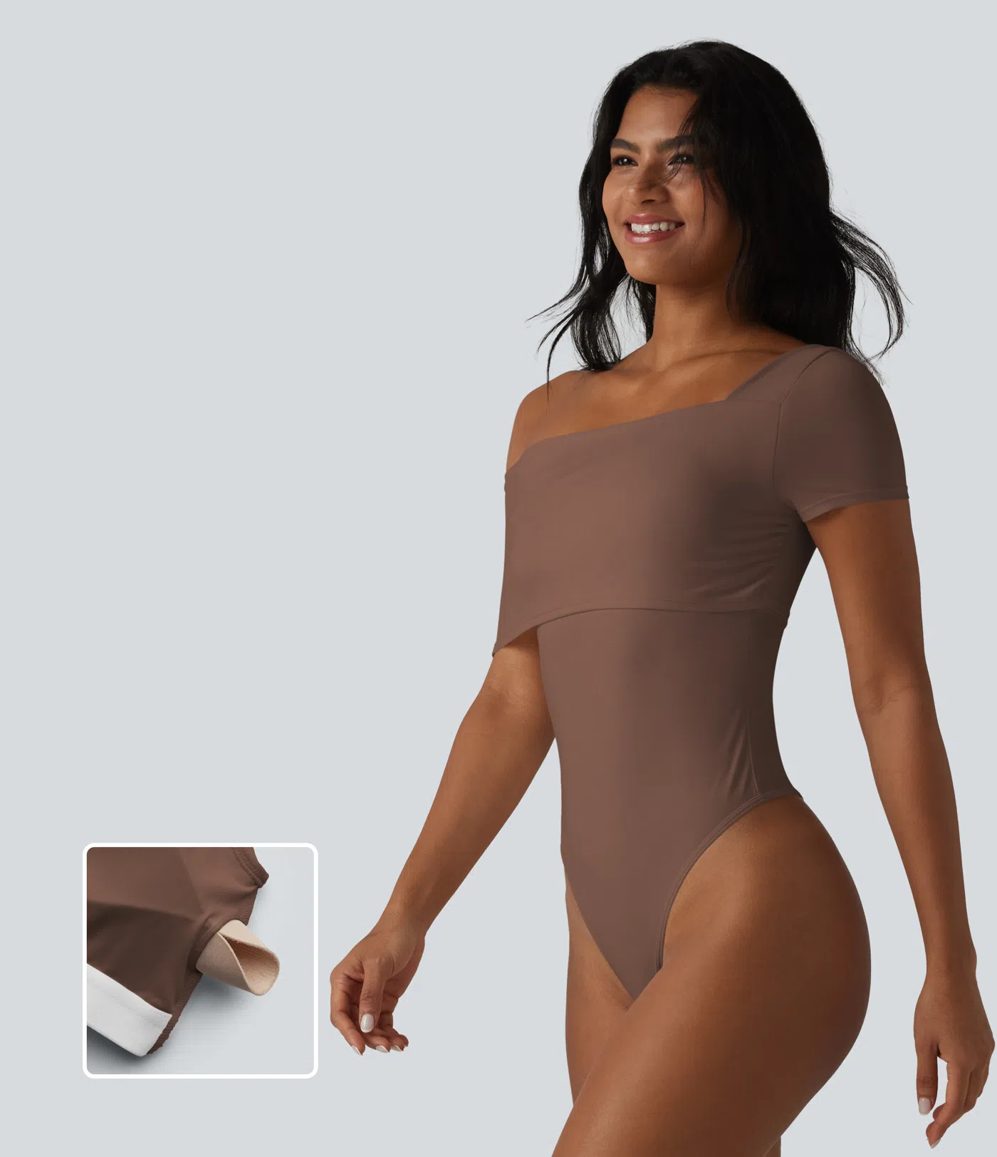 Sale€30,95 EUR€39,95 EURKaufen Sie 2 Stück für 60,30 € oder 4 Stück für 120,60 €.Ein-Schulter-Body mit integriertem BH, kurzen Ärmeln, schnelltrocknend, lässig