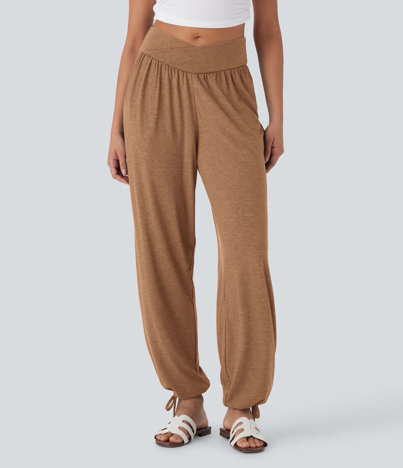 Crossover High Waisted Pocket Drawstring Casual Joggers
