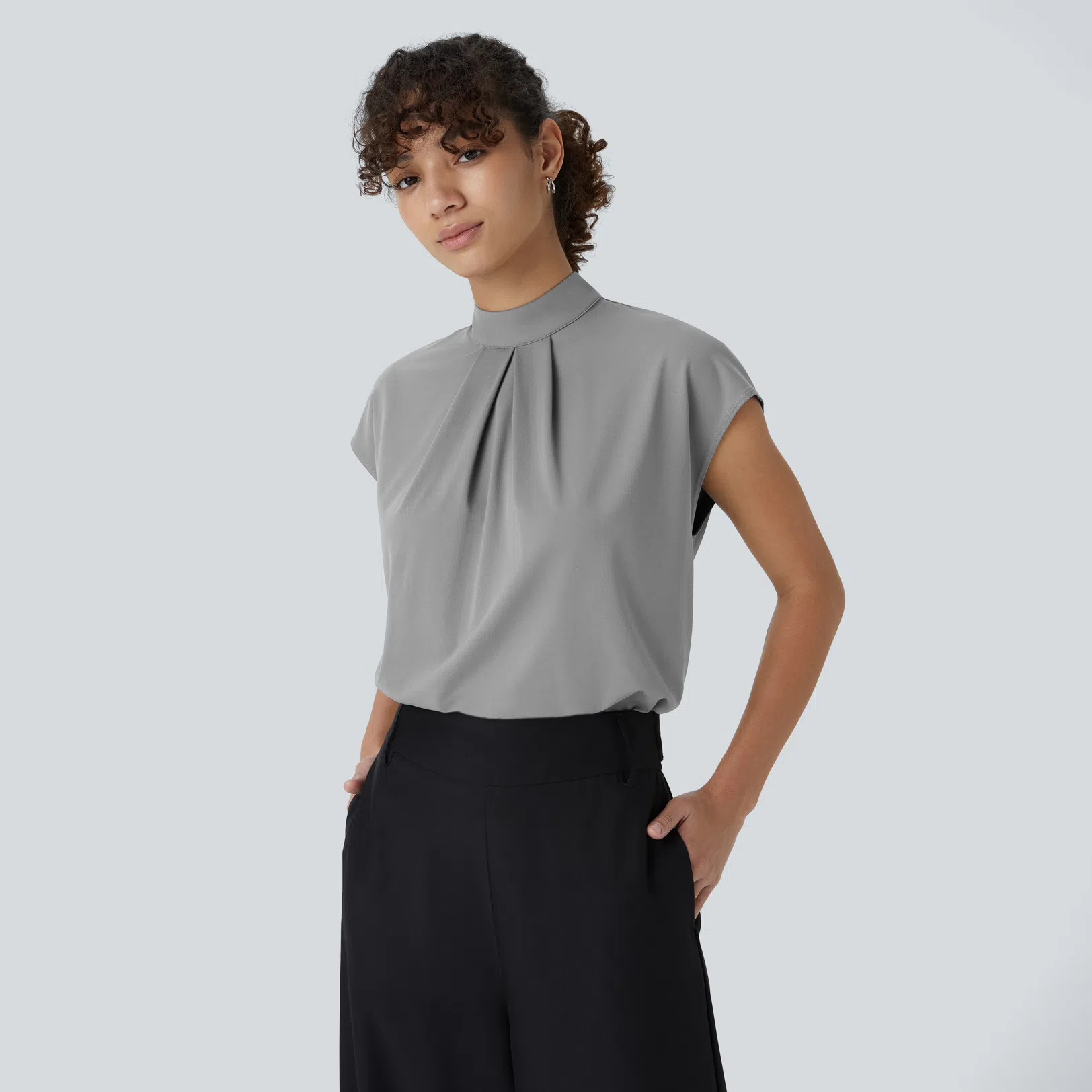 Round Neck Ruched Cool Touch Yoga Tank Top-UPF50+
