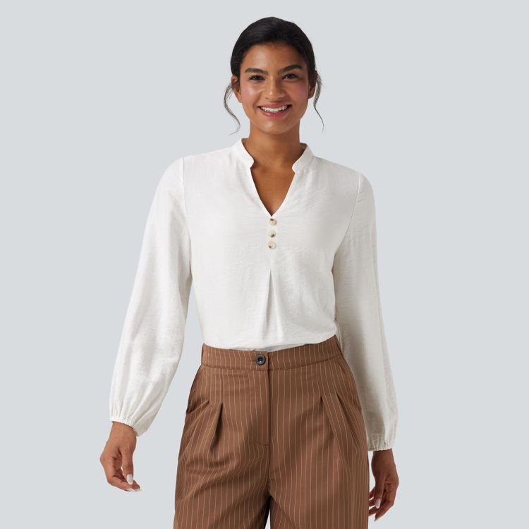 Ribbed Henley Neck Long Sleeve Slim Casual Top