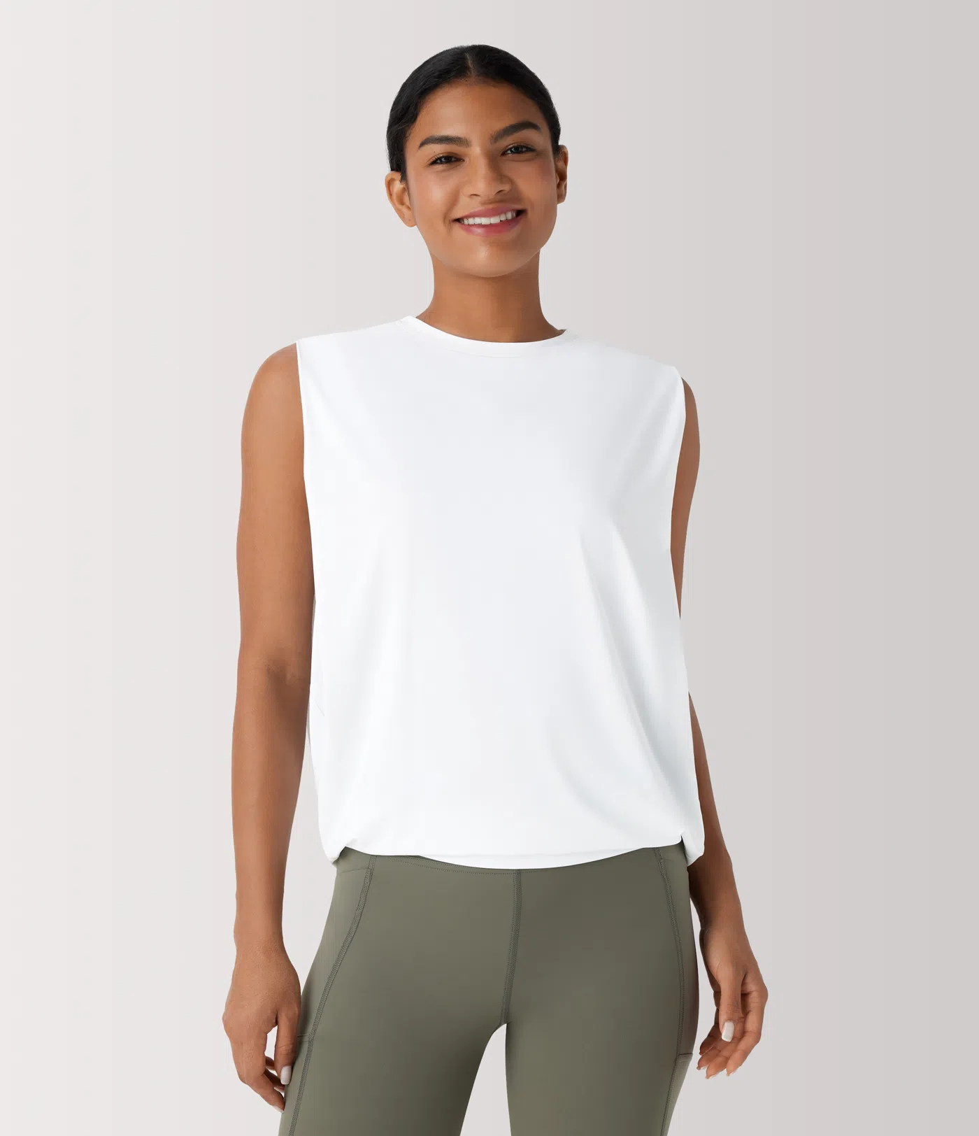 Round Neck Ruched Cool Touch Yoga Tank Top-UPF50+