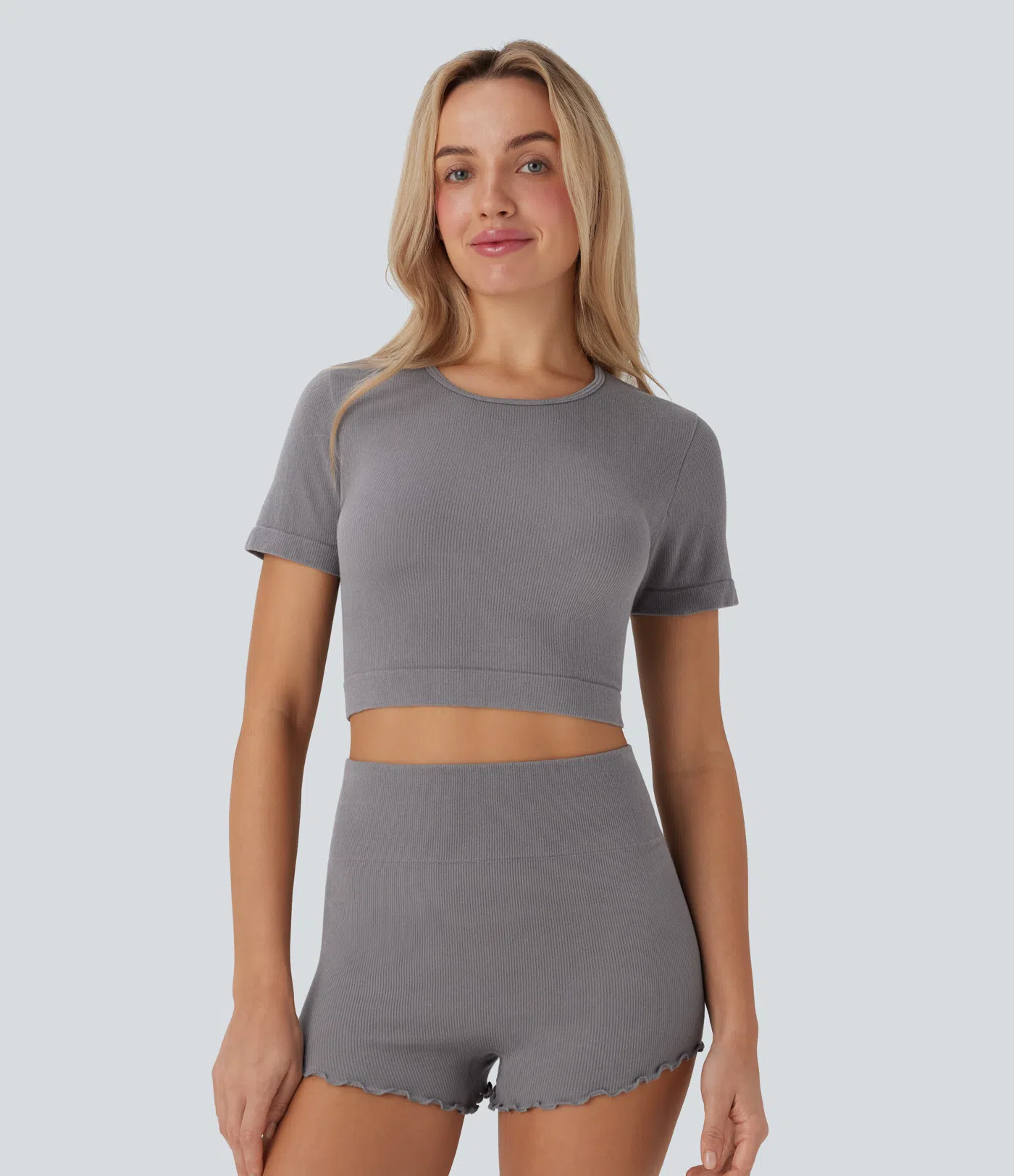 OneForm Seamless Flow Round Neck Short Sleeve Cropped Lounge Top