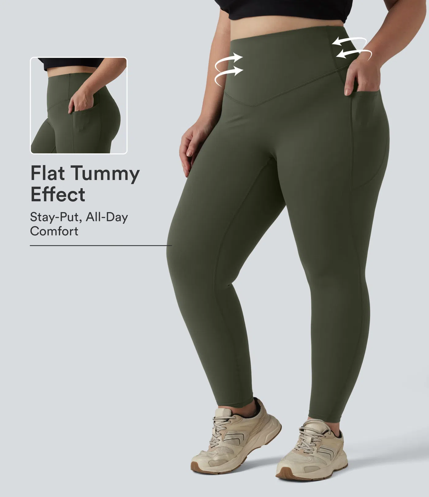 SALE$34.95Buy 2 For $59, 4 For $118SoftlyZero™ High Waisted Crossover Pocket Plain Plus Size Full Length Leggings-UPF50++6+6
