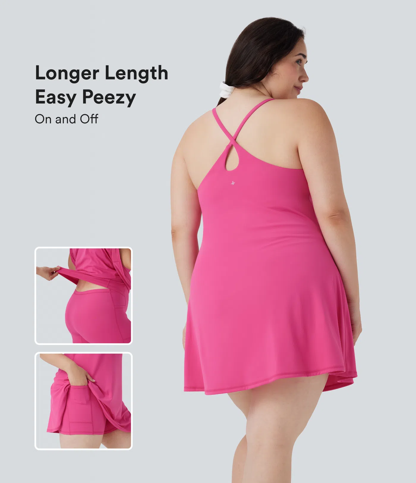 $59.95Plus Size SoftlyZero™ Airy U Neck Built-in Bra 2-in-1 Cool Touch Mini Yoga Active Dress with Pockets-Easy Peezy Edition