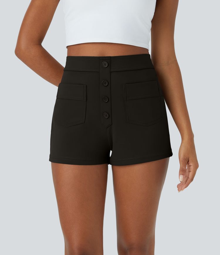 Pantalones cortos casuales de cintura alta con bolsillos 2.5''