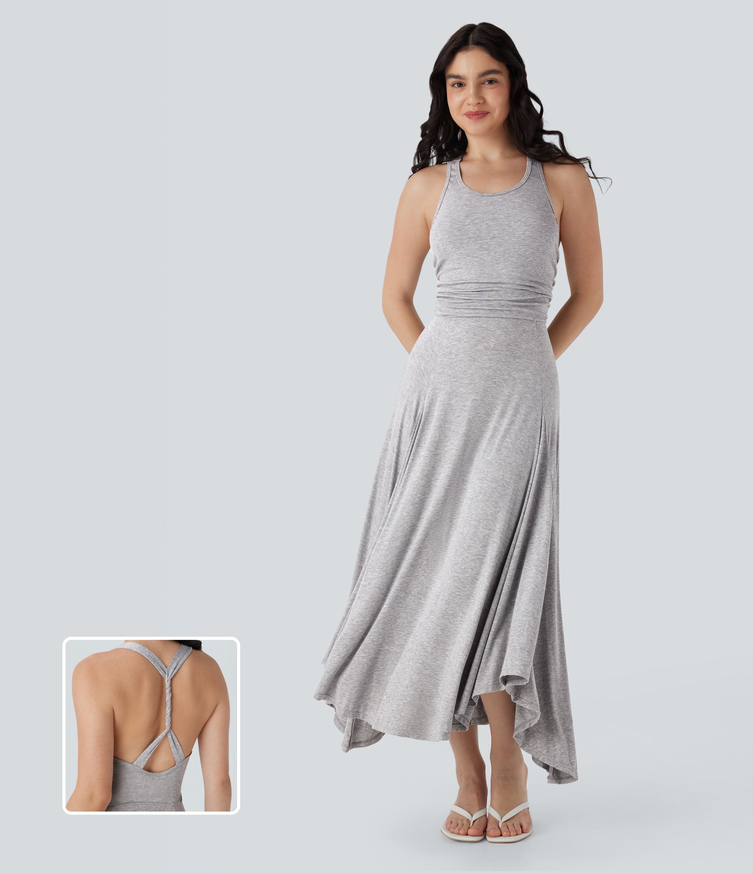 Ruched Asymmetric Hem Flowy Maxi Casual Dress