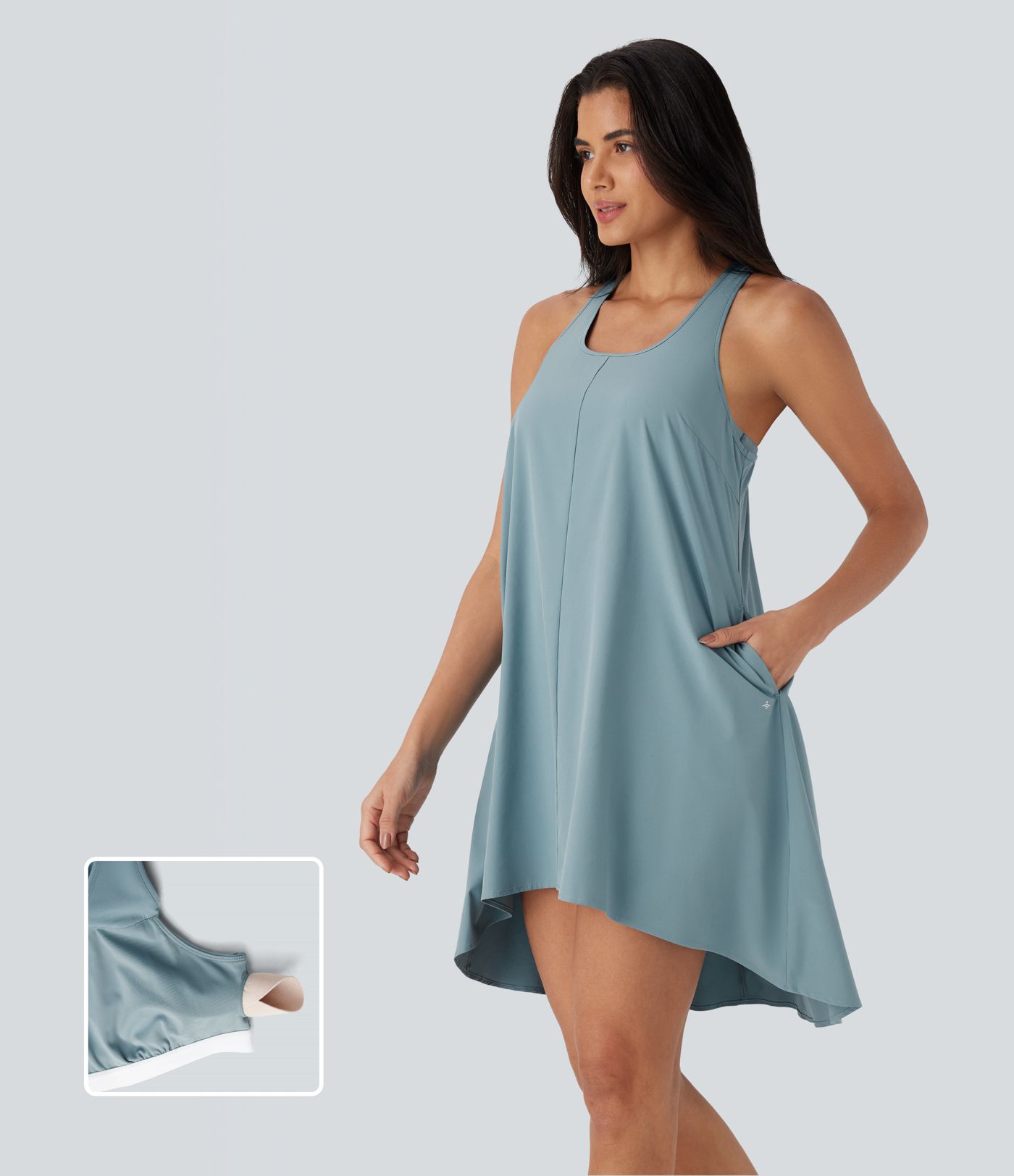 Breezeful™ RacerPocket High Low Flowy Mini Quick Dry Casual Dress