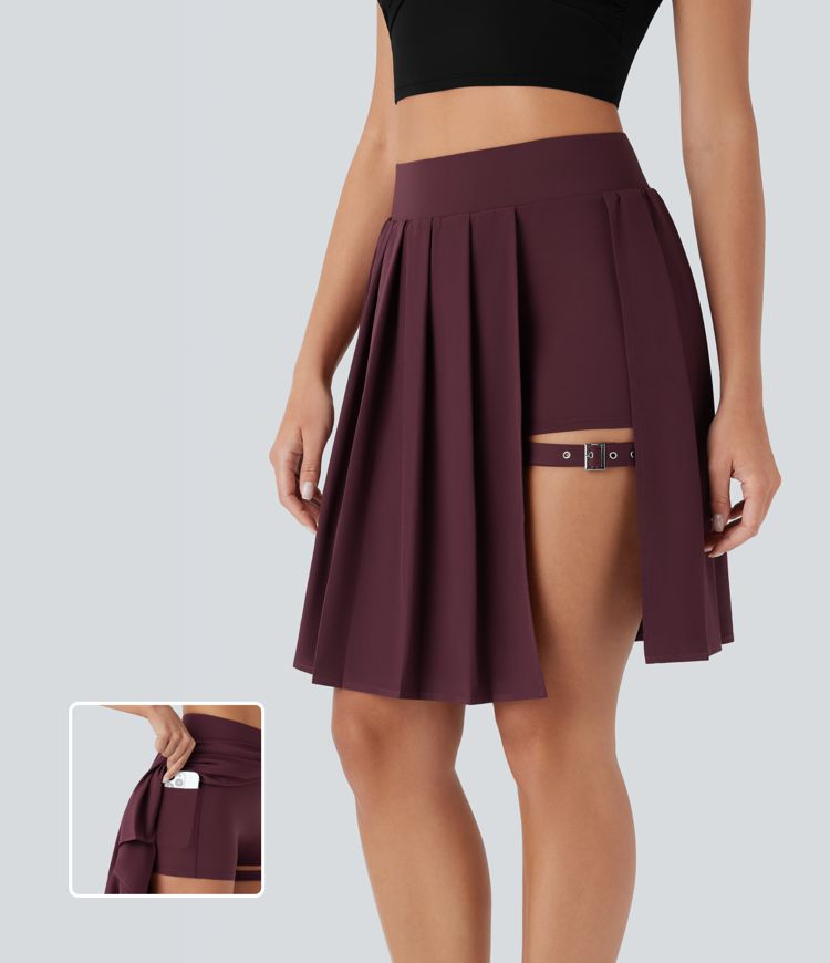 Breezeful™ High Waisted Pleated 2-in-1 Adjustable Buckle Quick Dry Casual Skirt with Pocket-Longer Length