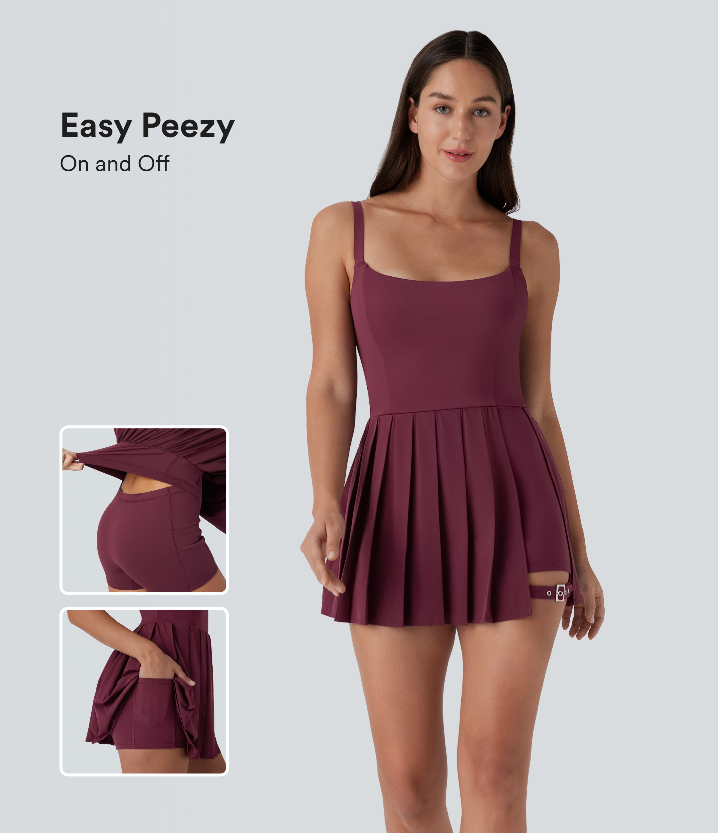Breezeful™ Pleated Adjustable Buckle 2-in-1 Micro Mini Quick Dry Casual Slip Dress with Pocket-Easy Peezy