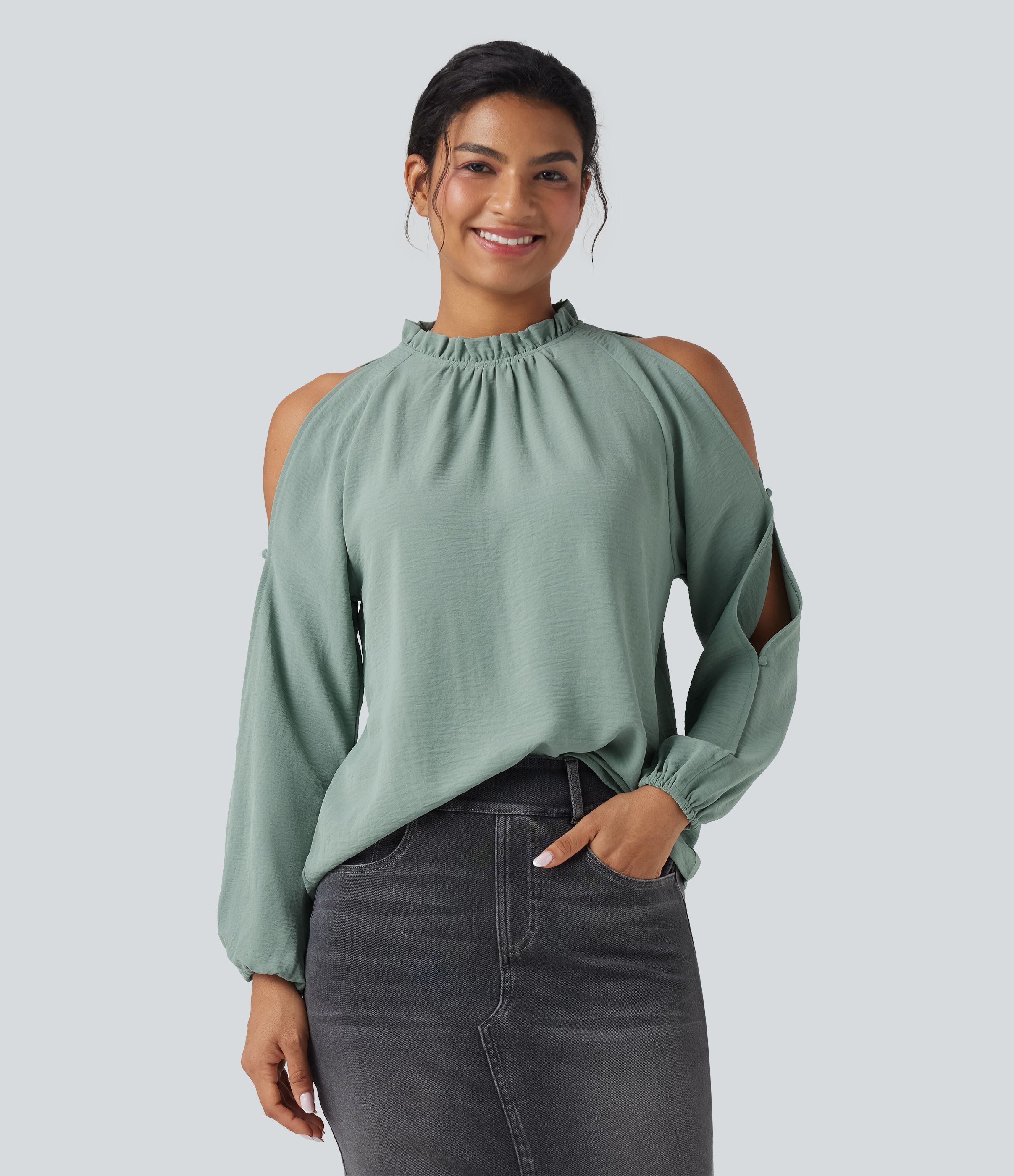 Cold-Shoulder Long Sleeve Relaxed Casual Blouse