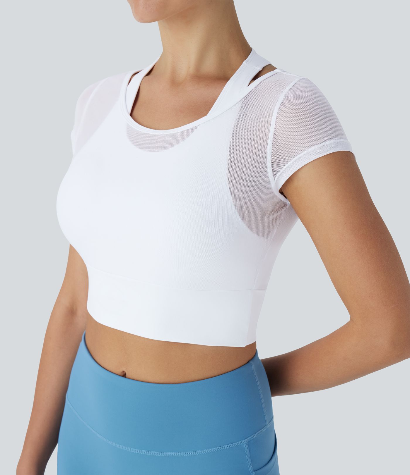 Contrast Mesh Racerback 2-in-1 Cropped Yoga Sports Top