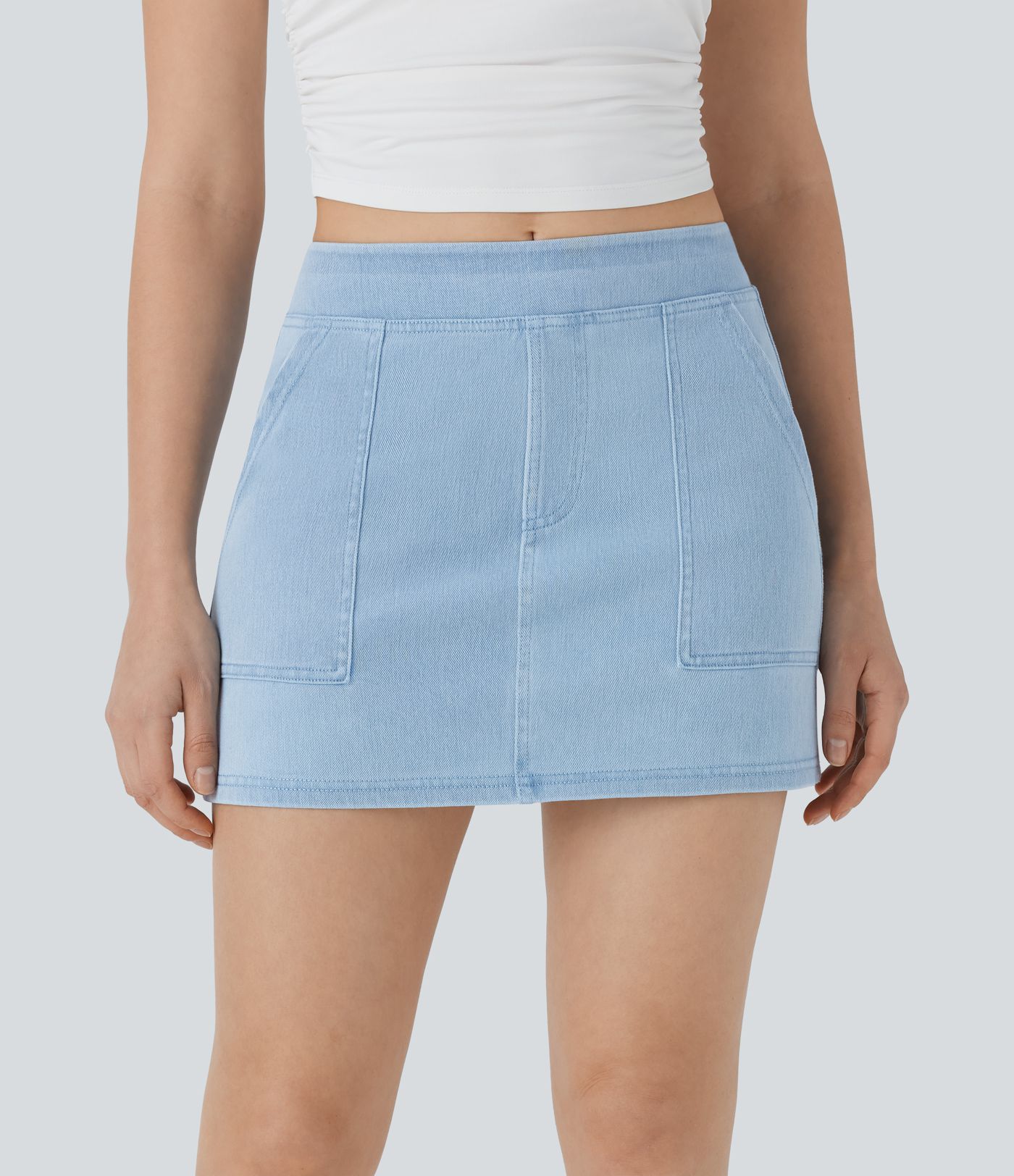 Halara Flex™ Mid Rise A-line Mini Washed Denim Casual Skirt with Pockets