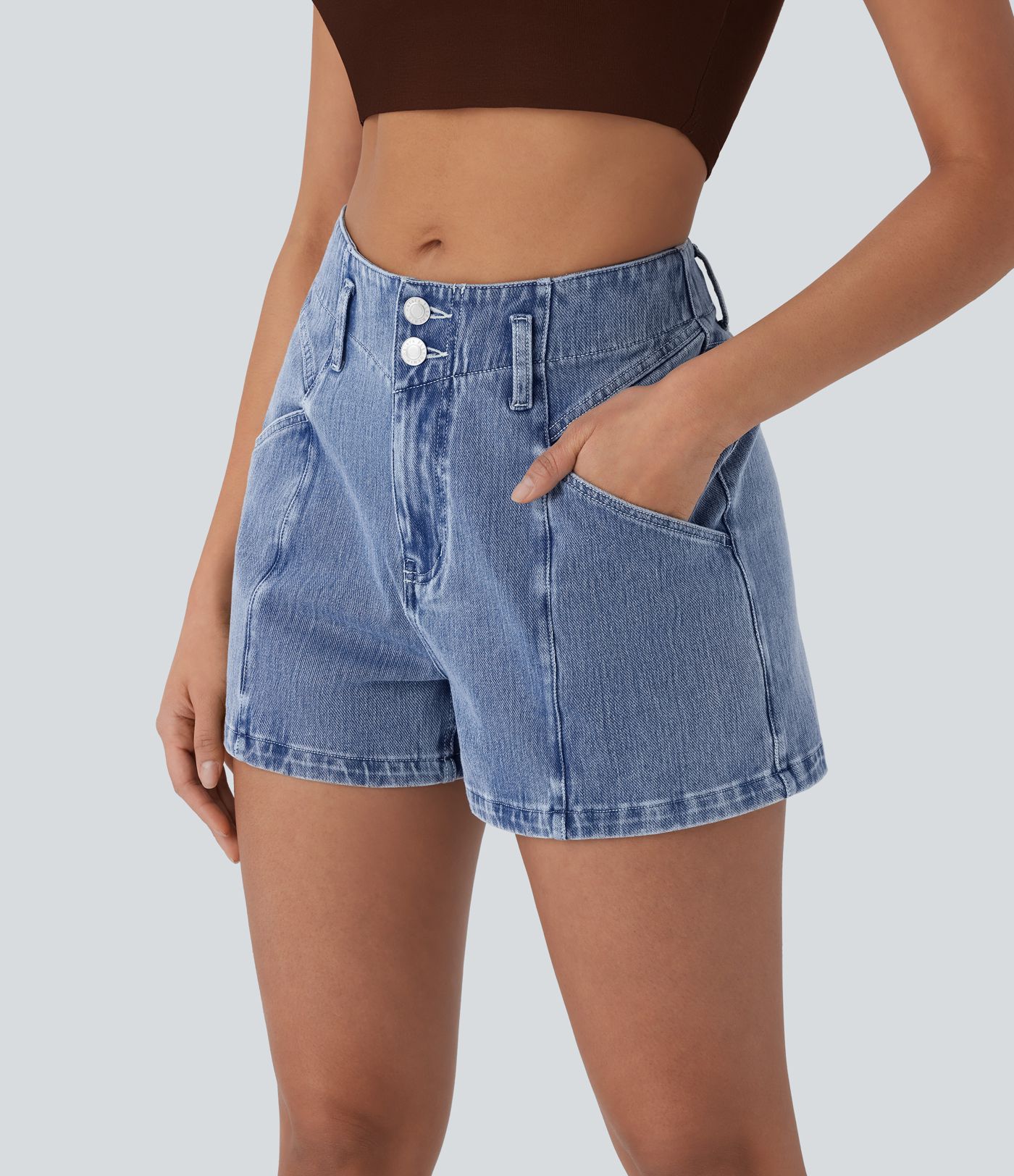 Halara Flex™ Mid Rise Zipper Pocket Denim Casual Shorts 3''