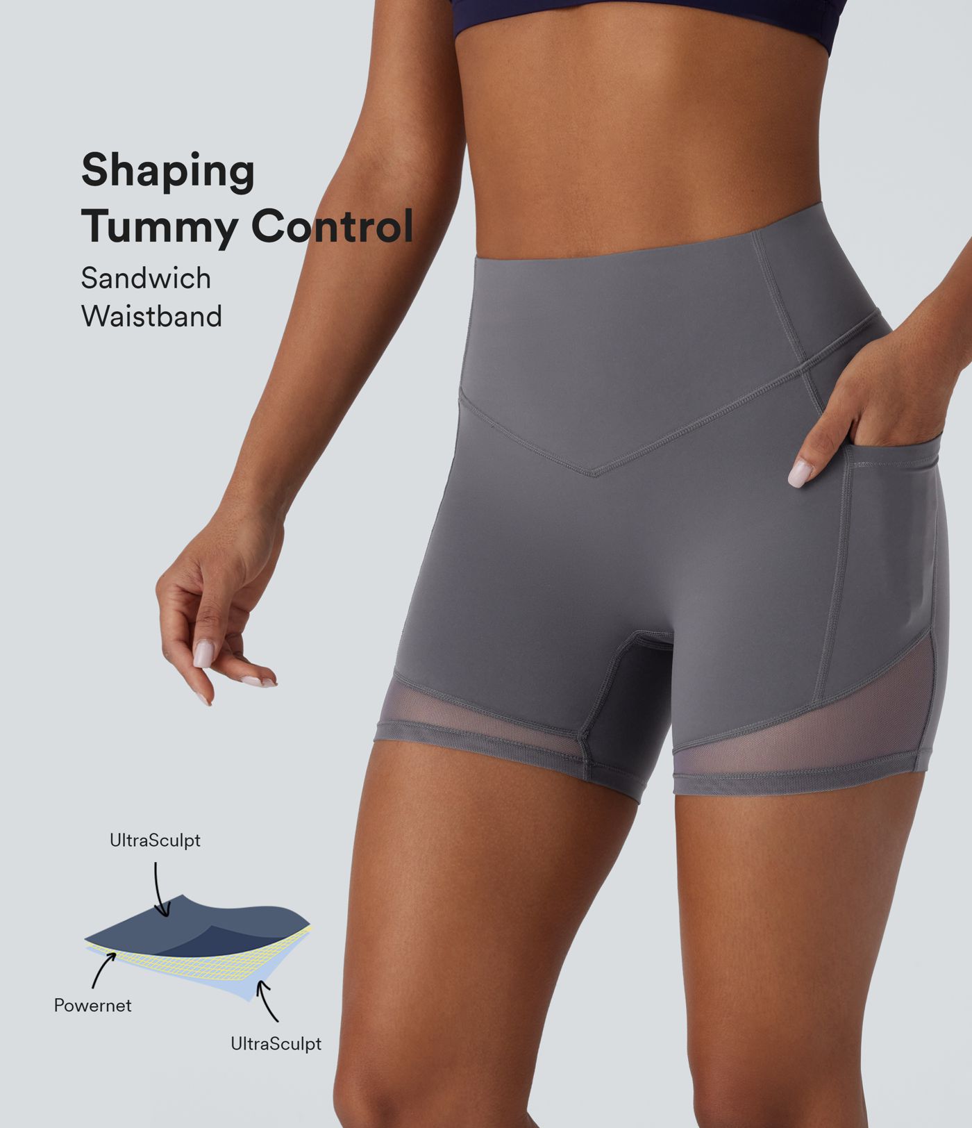 Halara UltraSculpt™ High Waisted Tummy Control Pocket Contrast Mesh Shaping Workout Biker Shorts 5''