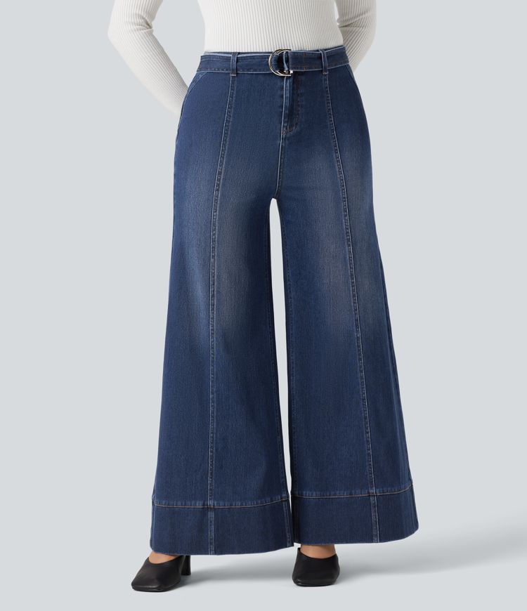 Halara Flex™ High Waisted Belted Wide Leg Flare Casual Jeans with Pockets