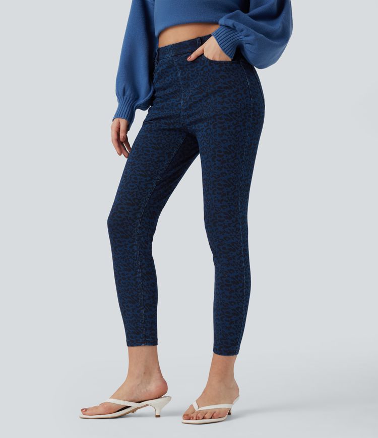 Halara Flex™ Leopard Print High Waisted Casual Skinny 7/8 Jeans with Pockets