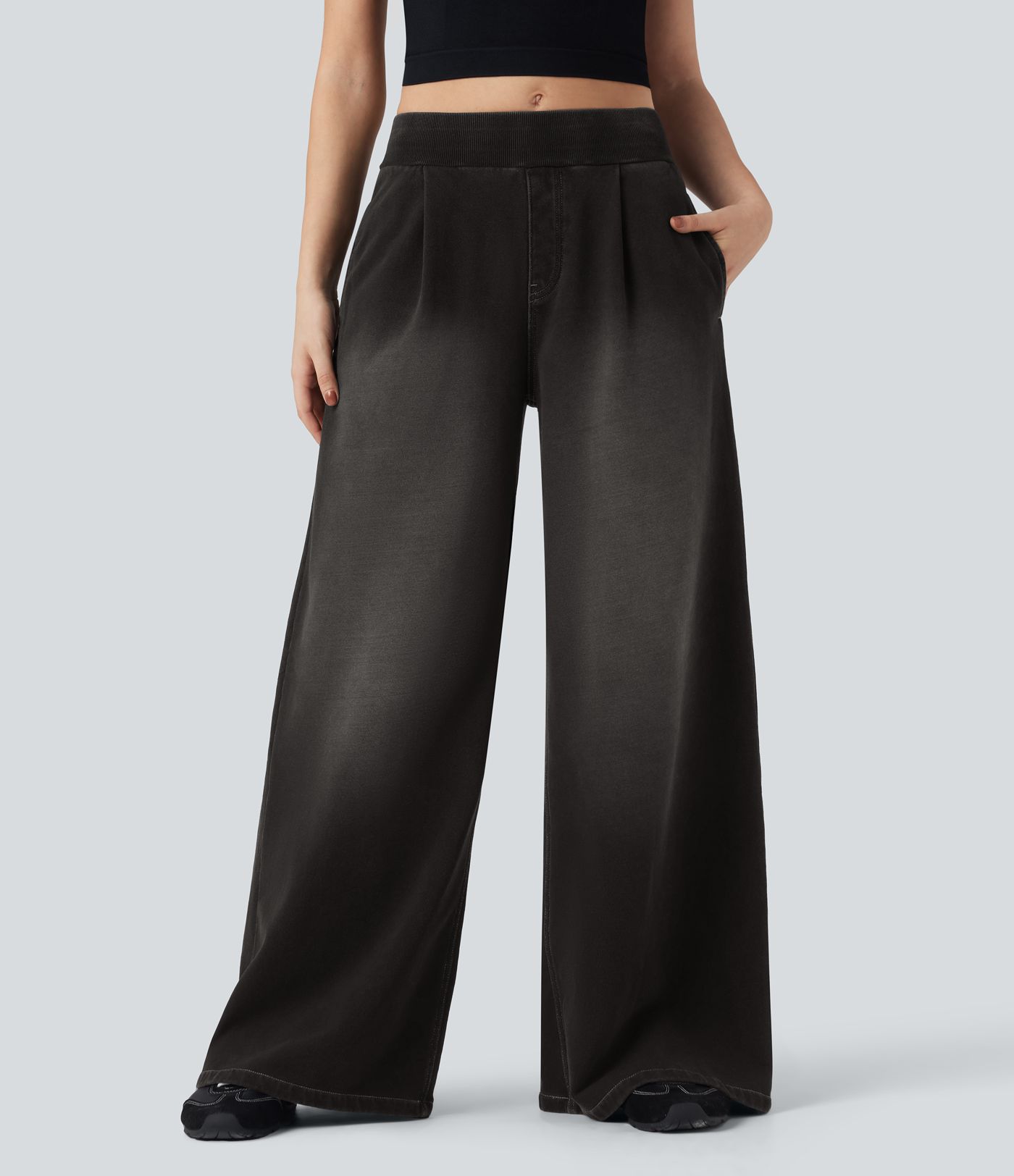 Halara Flex™ Mid Rise Wide Leg Flare French Terry Casual Sweatpants Jeans with Pockets