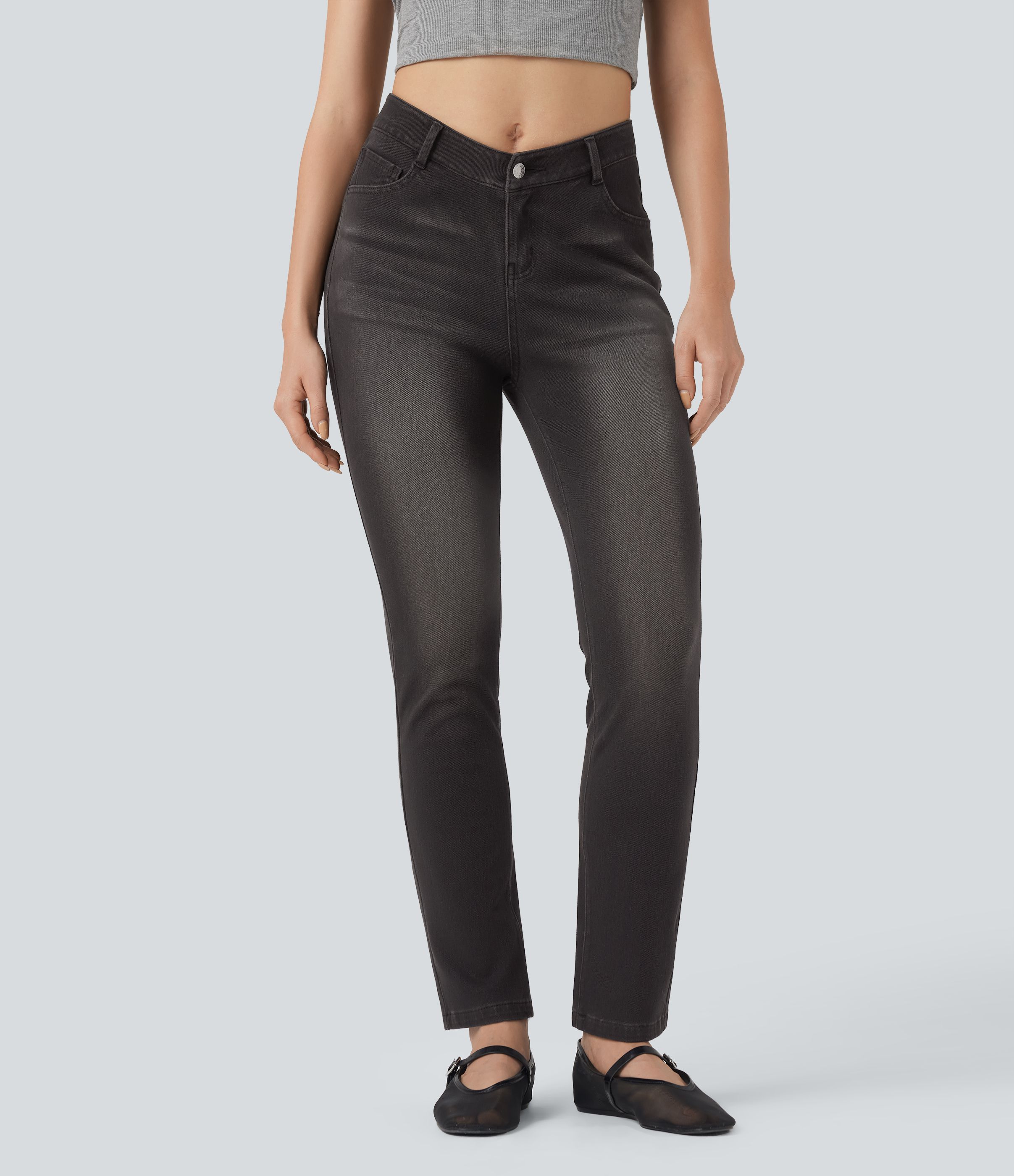 Halara Flex™ V Shaped High Waisted Casual Slim Jeans with Pockets