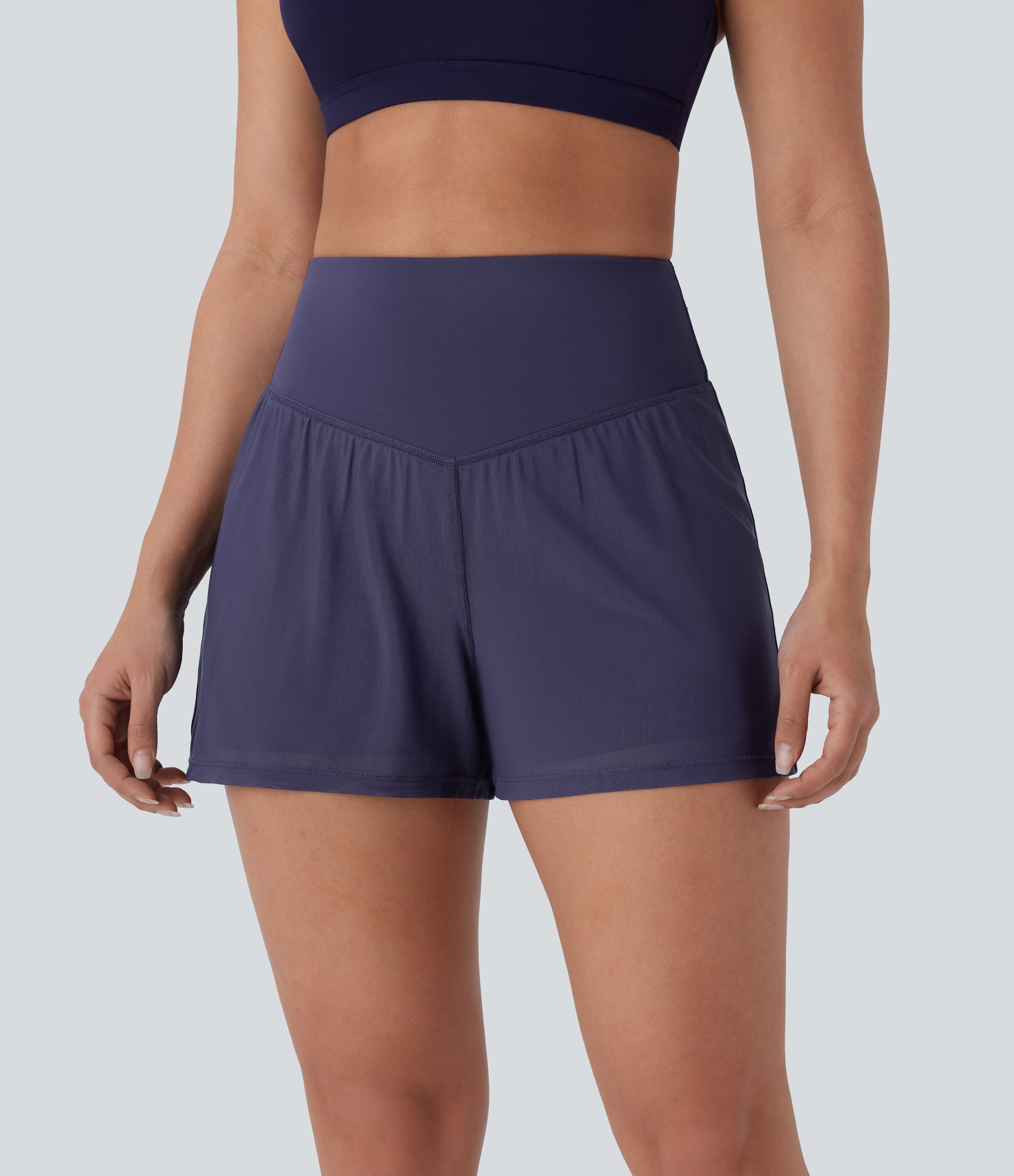 High Waisted 2-in-1 Pocket Contrast Mesh Yoga Shorts 3''