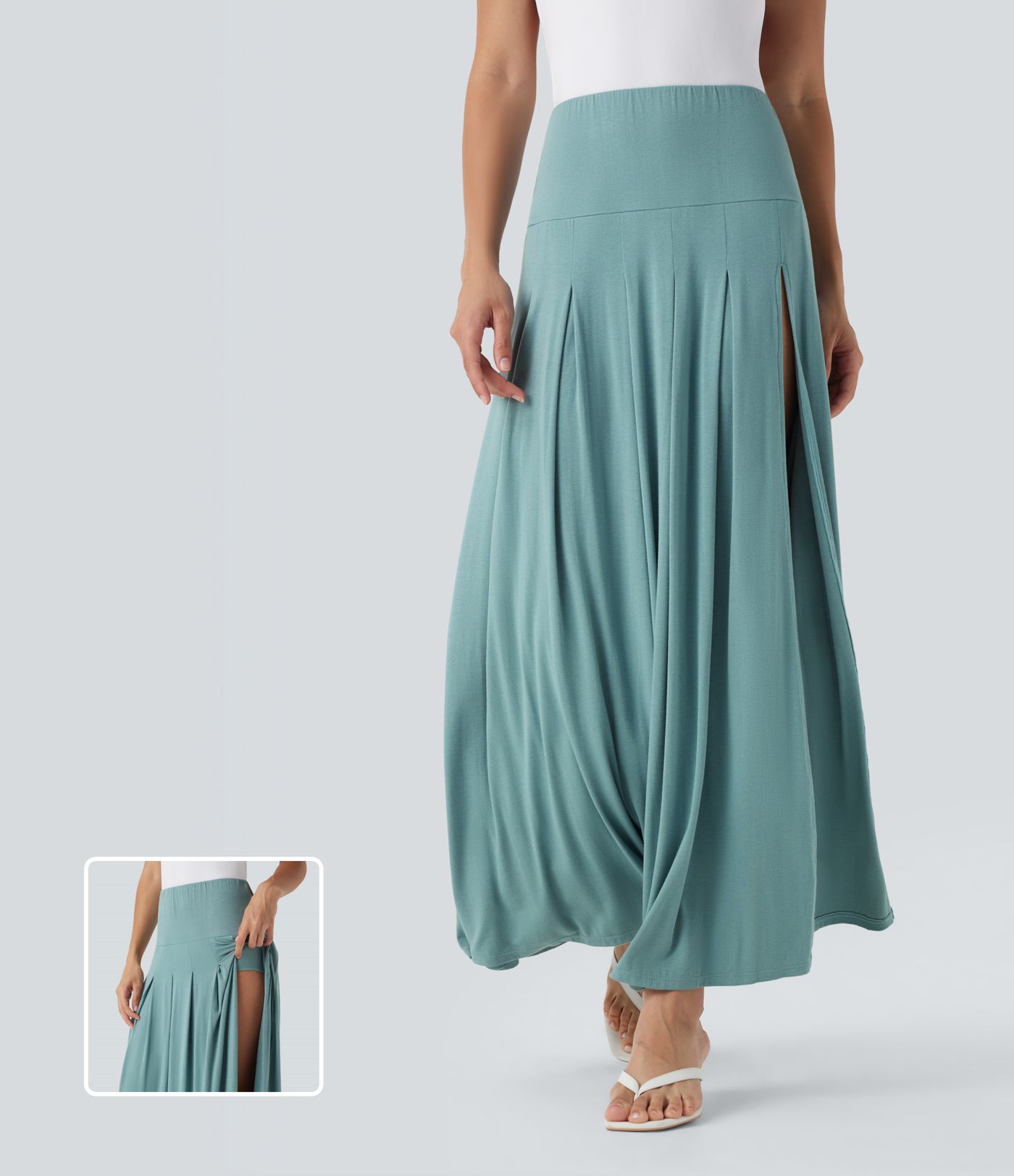 High Waisted Draped 2-in-1 Maxi Casual Skirt