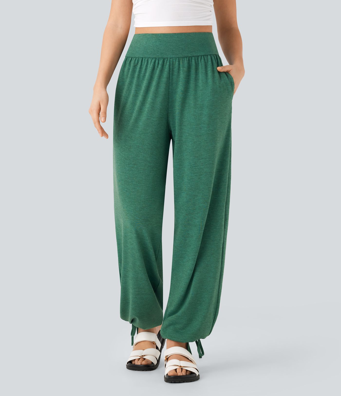 High Waisted Drawstring Hem Casual Joggers with Pockets