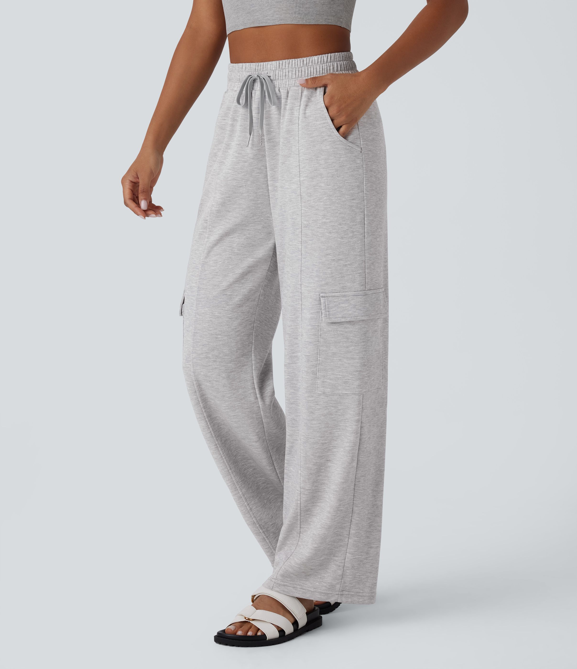 High Waisted Drawstring Pockets Cargo Straight Leg Casual Pants