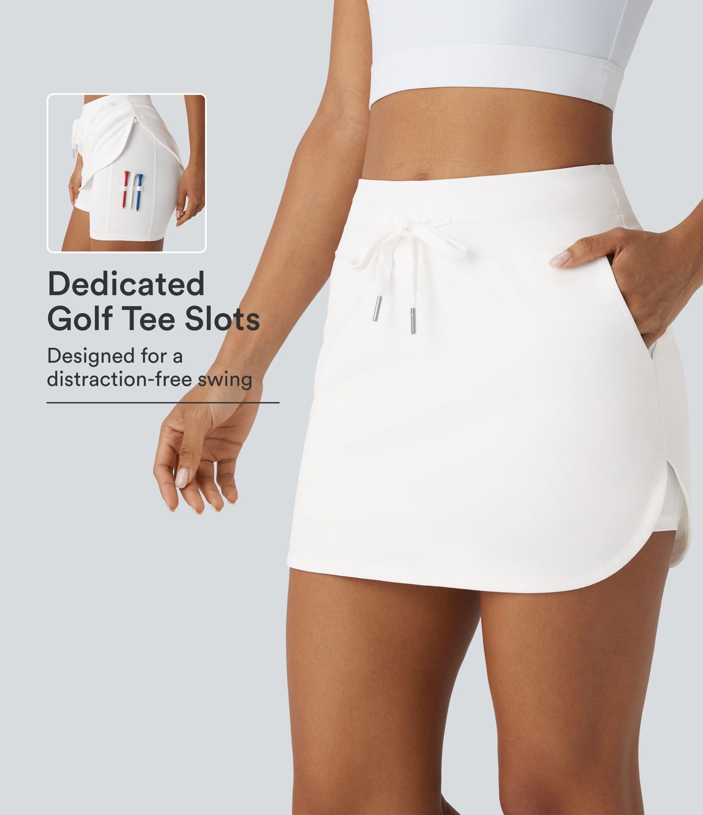 SoftlyZero™ QuickDry High Waisted Drawstring Pocket 2-in-1 Curved Hem Mini Golf Skirt-Golf Tee Pocket