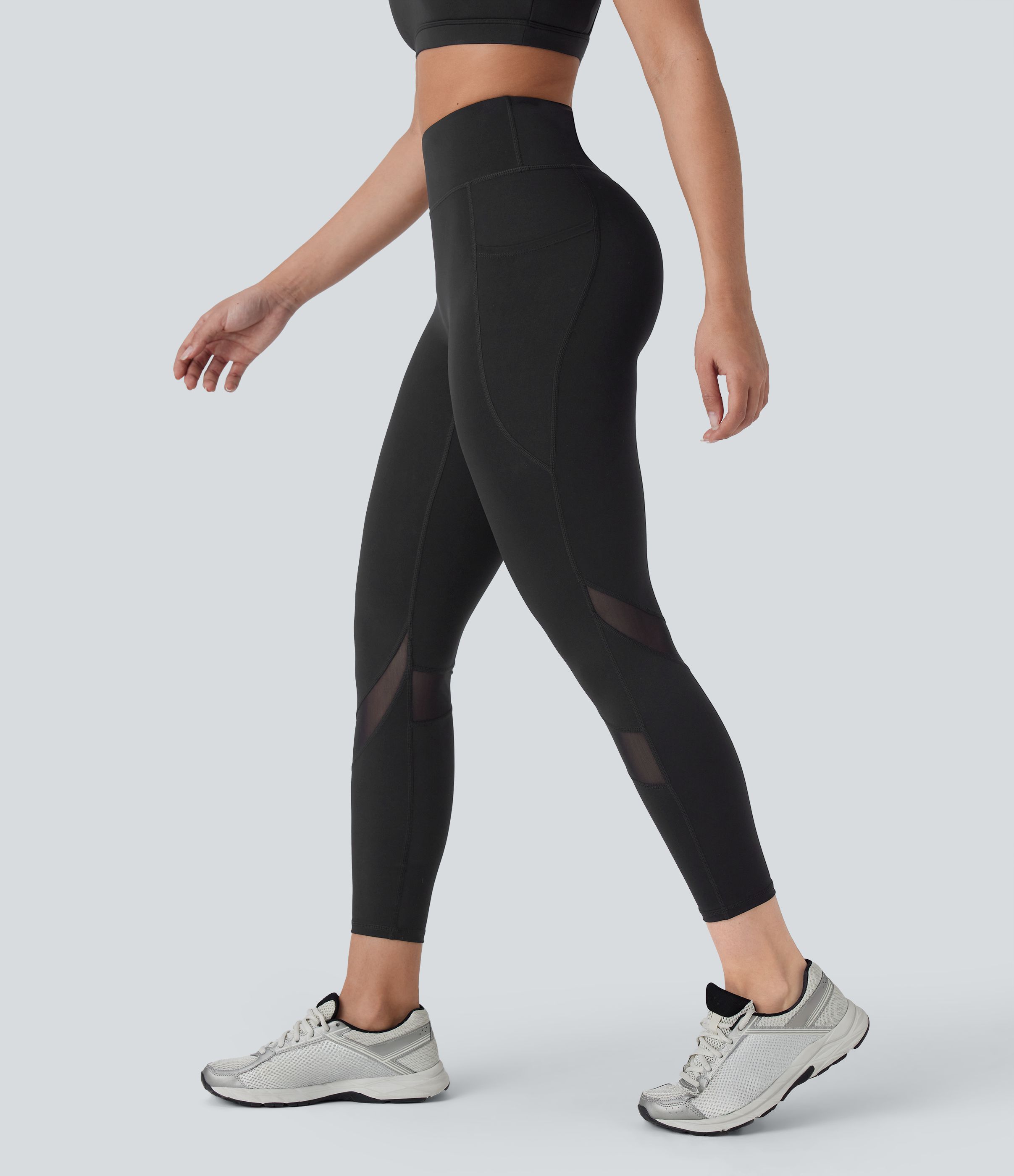 High Waisted Pocket Contrast Mesh Yoga 7/8 Leggings