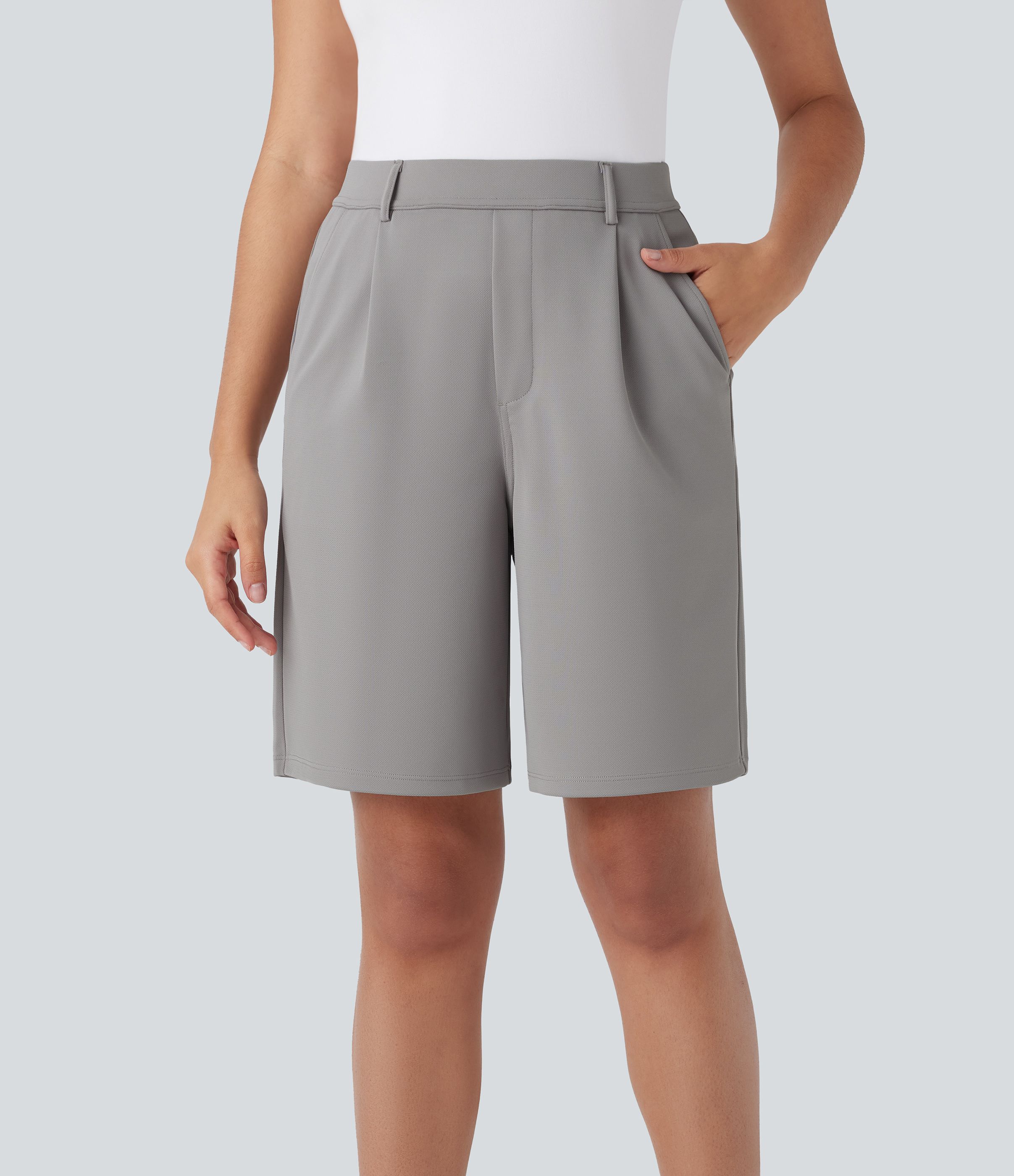 Hohe Taille Taschen Gerade Bein Crêpe Arbeits-Bermuda-Shorts
