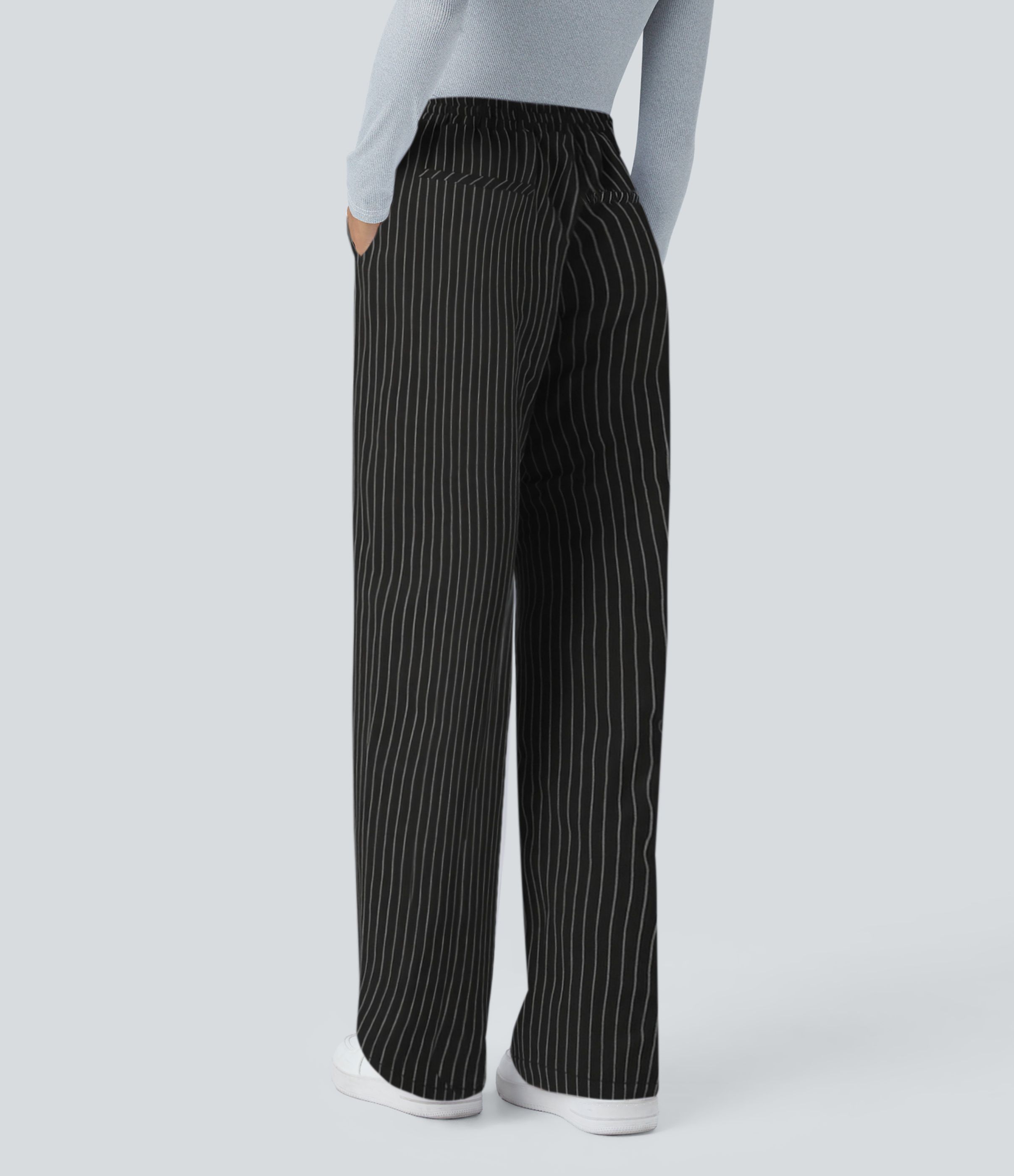High Waisted Pocket Wide Leg Stripe Work Pants