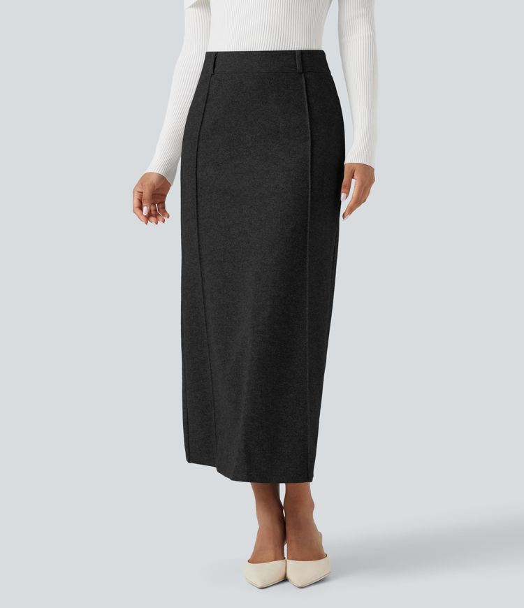 Falda midi de talle alto con abertura, de forro polar, estilo casual, corte evasé.