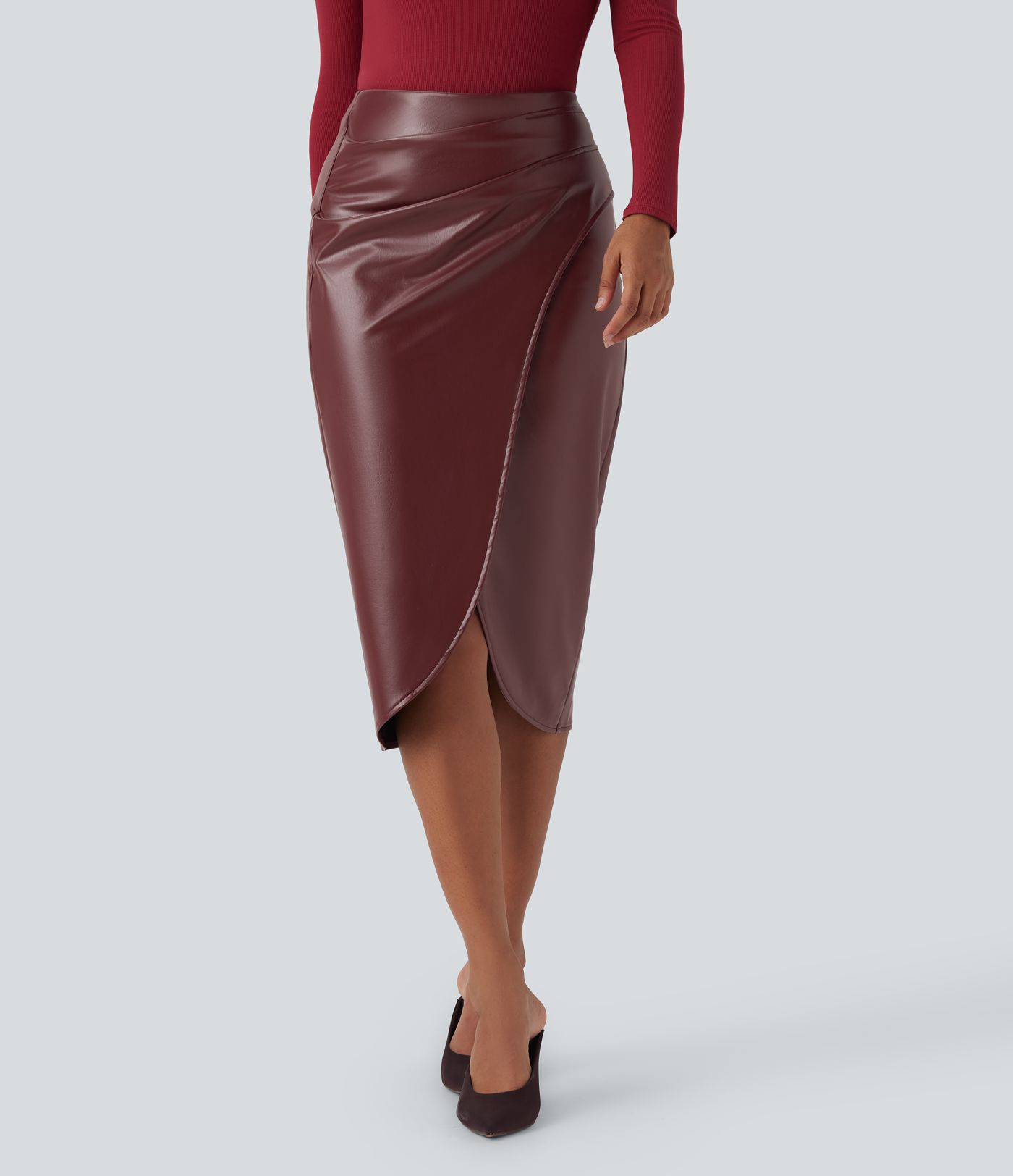 High Waisted Stretchy PU Fleece Tulip Hem Skirt