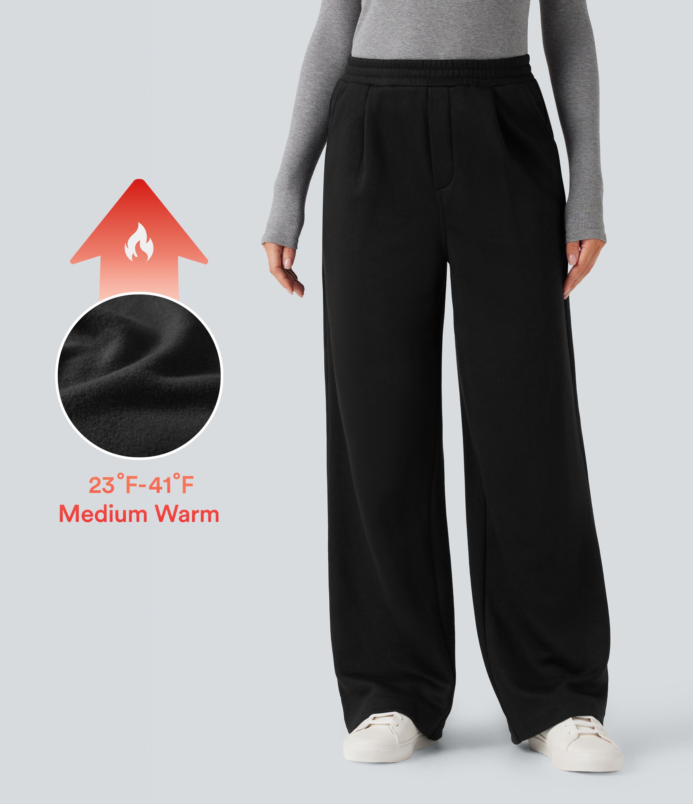 Pantalones de trabajo de forro polar de tiro alto y pierna recta con bolsillos.