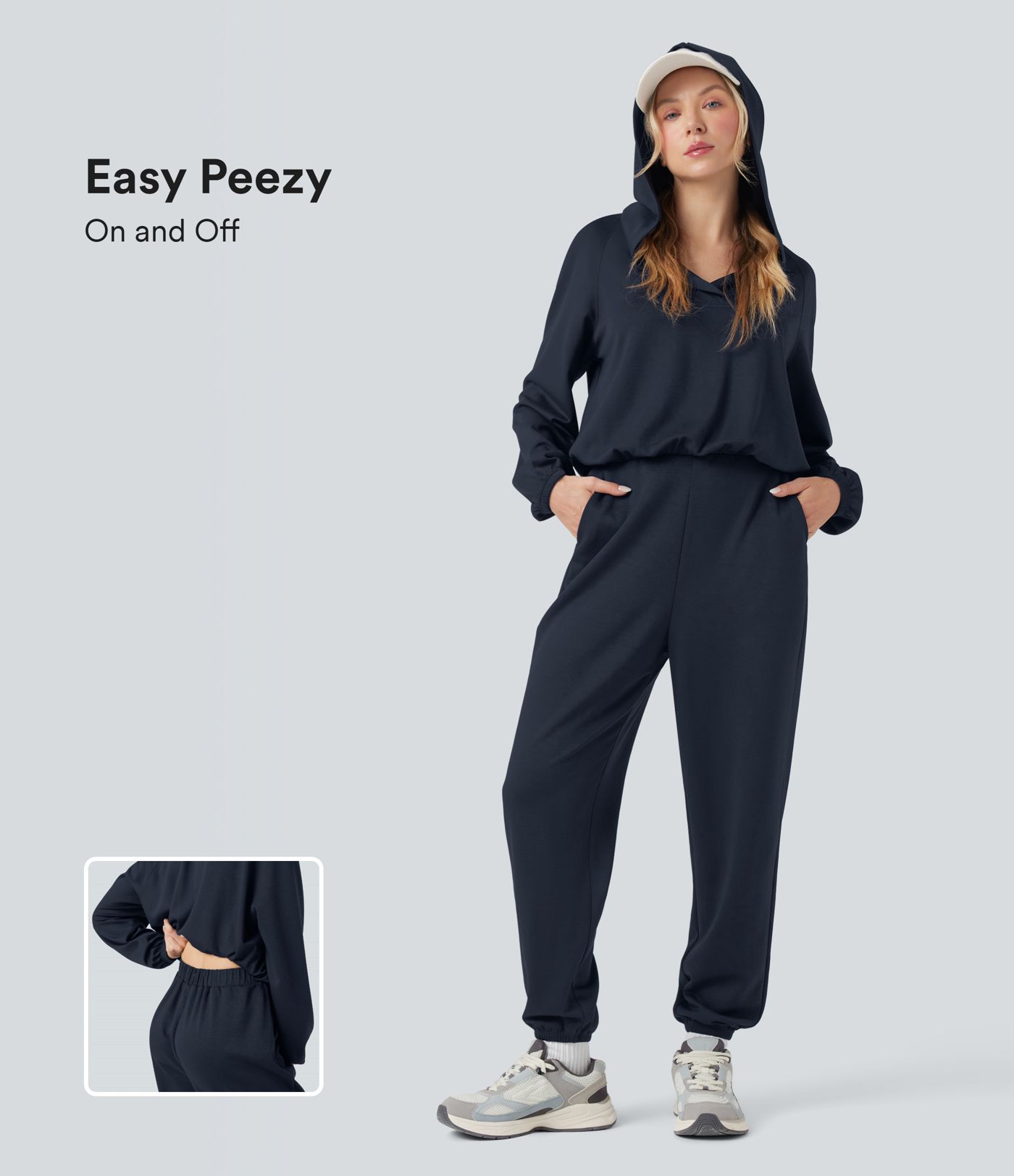 Hooded Long Sleeve Casual Jumpsuit with Pockets-Easy Peezy