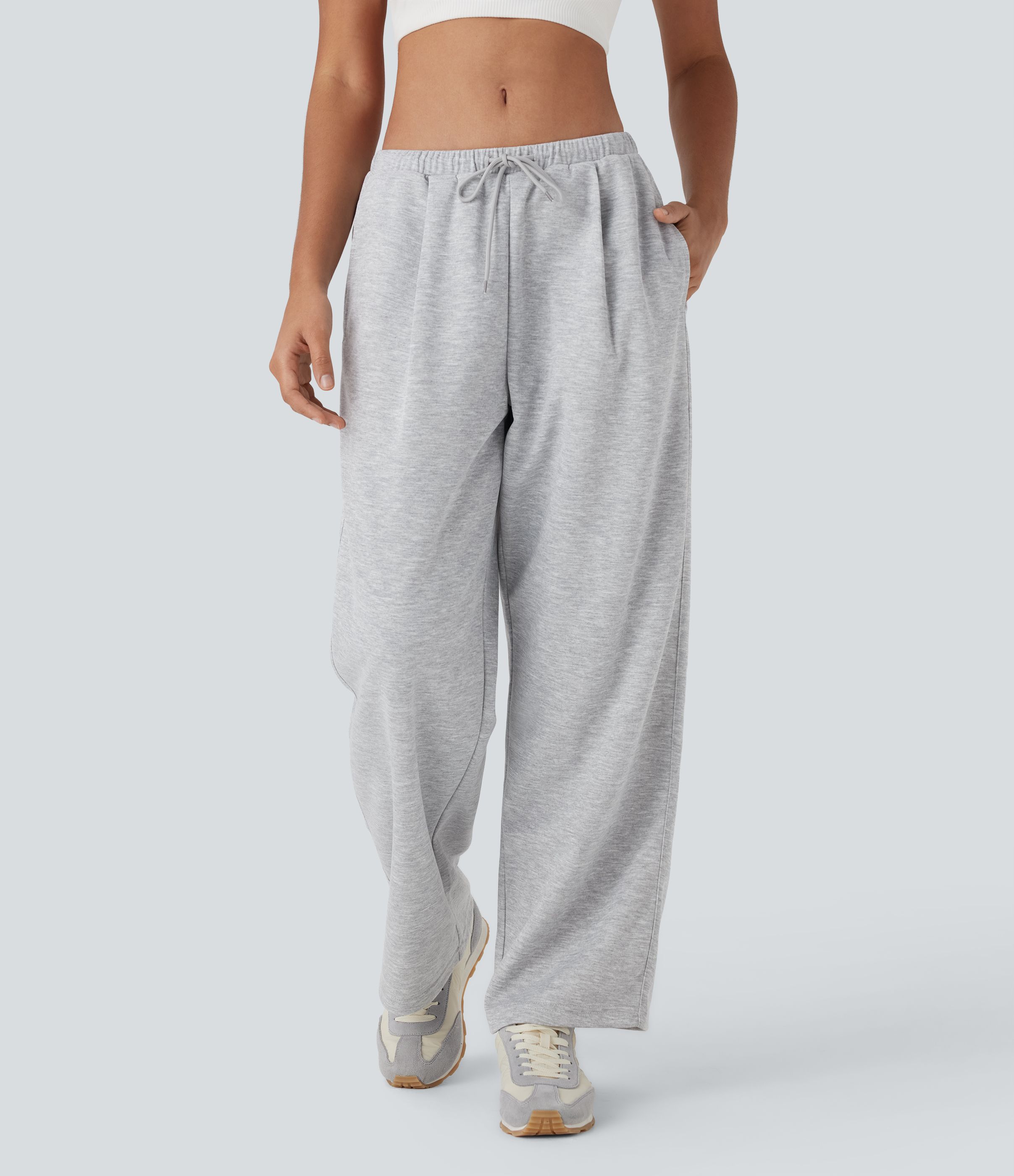 Low Rise Drawstring Straight Leg Yoga Pants with Pockets