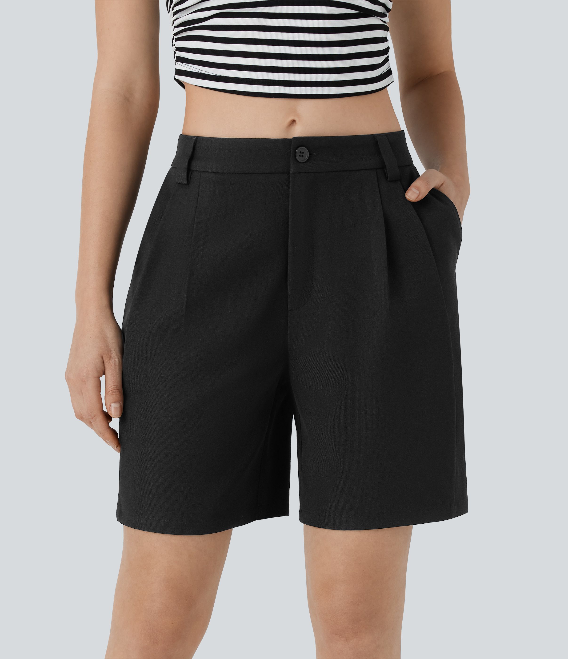 Mid Rise Zipper Pocket Barrel Leg Casual Bermuda Shorts