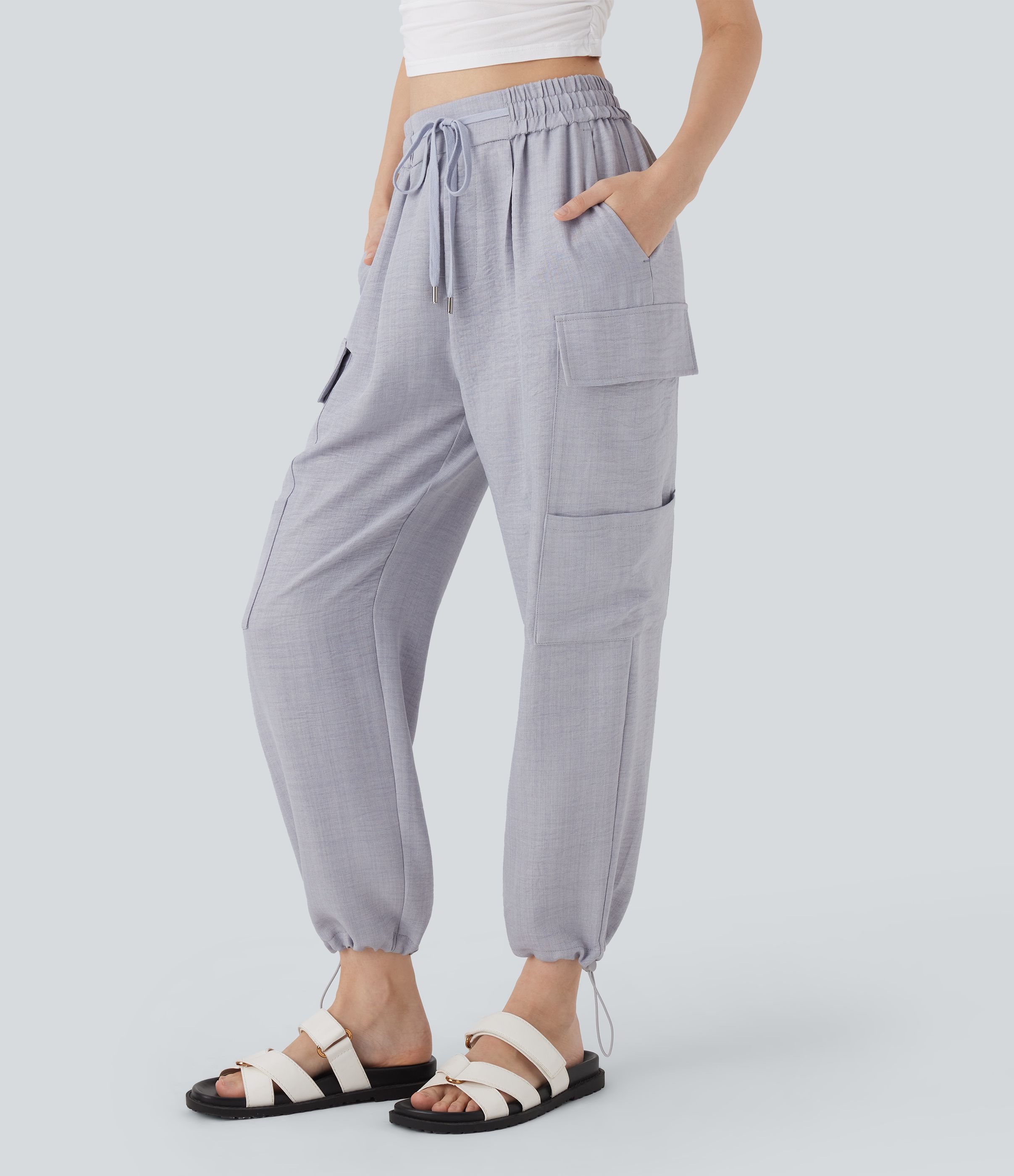 Mid Rise Drawstring Casual Cargo Pants with Pockets