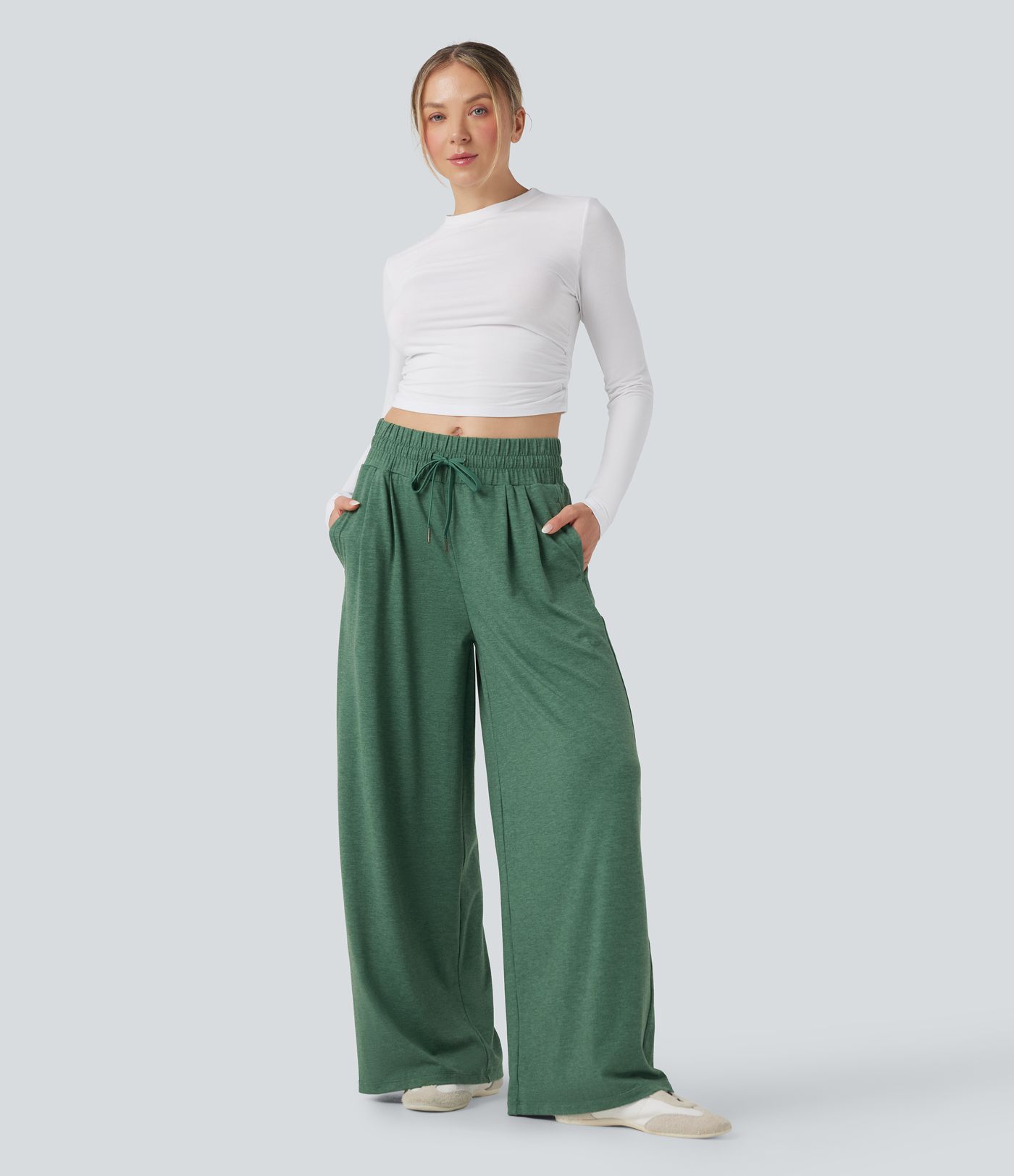 Mid Rise Drawstring Heathered Casual Baggy Pants with Pockets