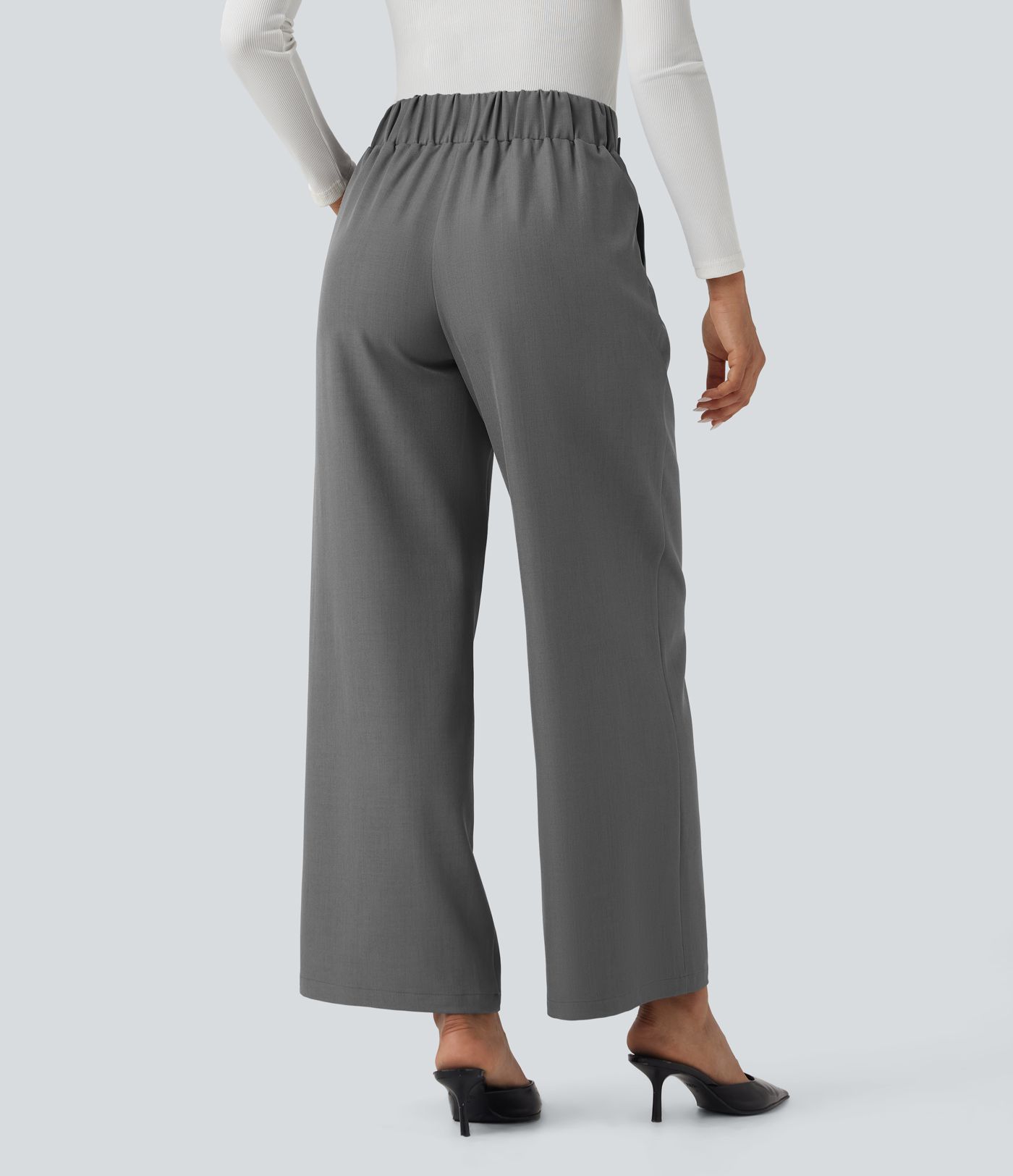 Mid Rise Wide Leg Work Pants with Pockets