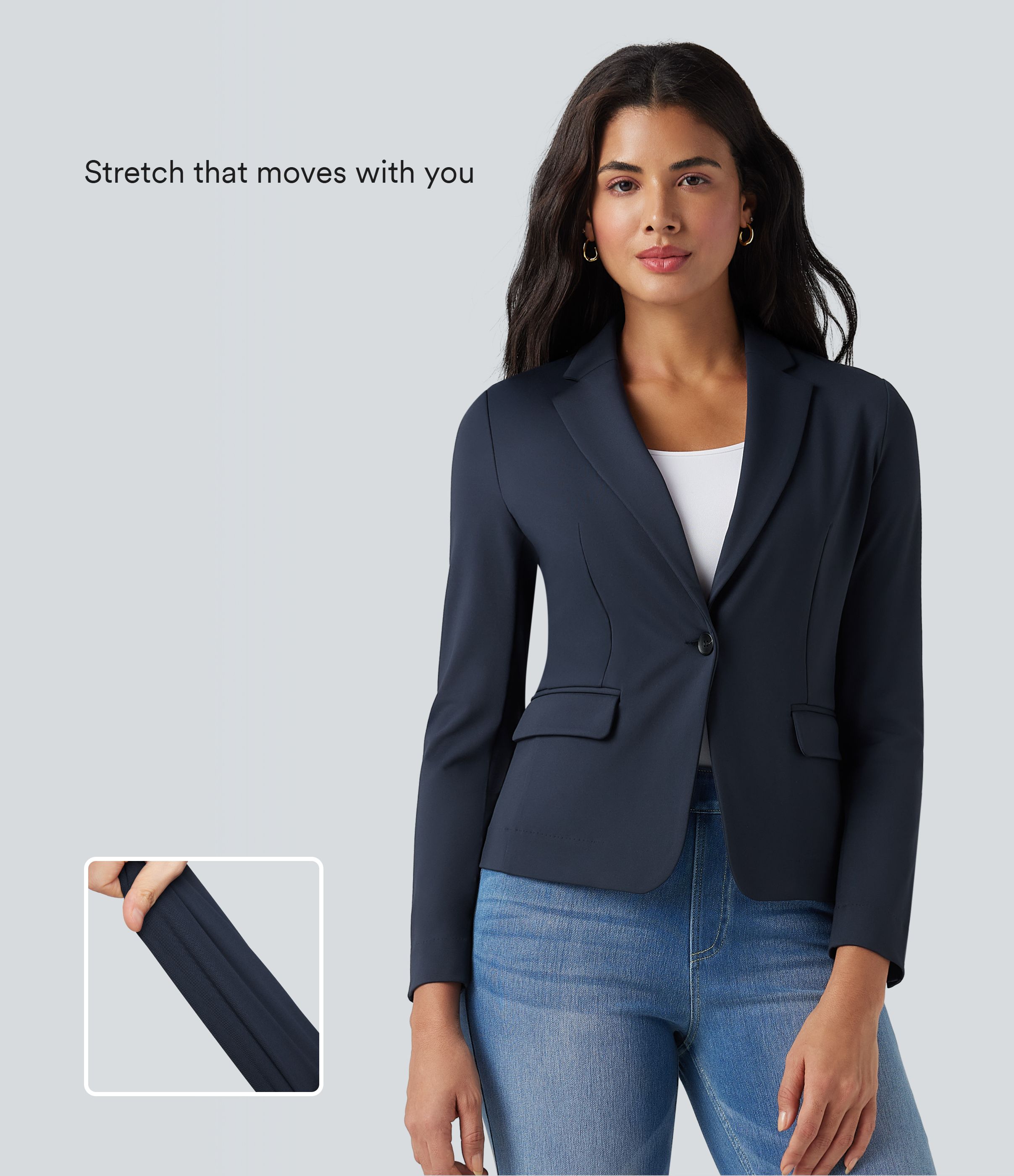 Notched Collar Long Sleeve Work Blazer with Pockets