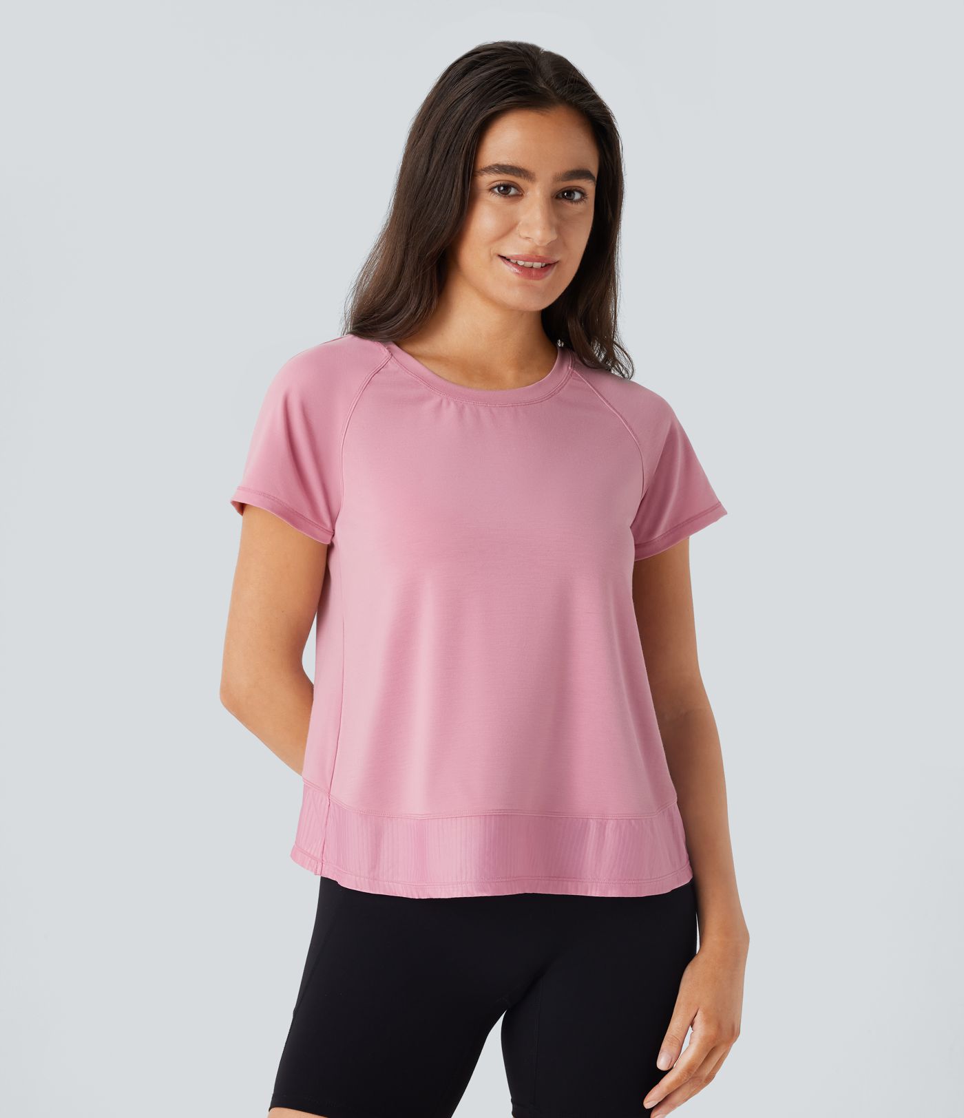 Raglan Sleeve Crossover Hem Quick Dry Running Sports Top