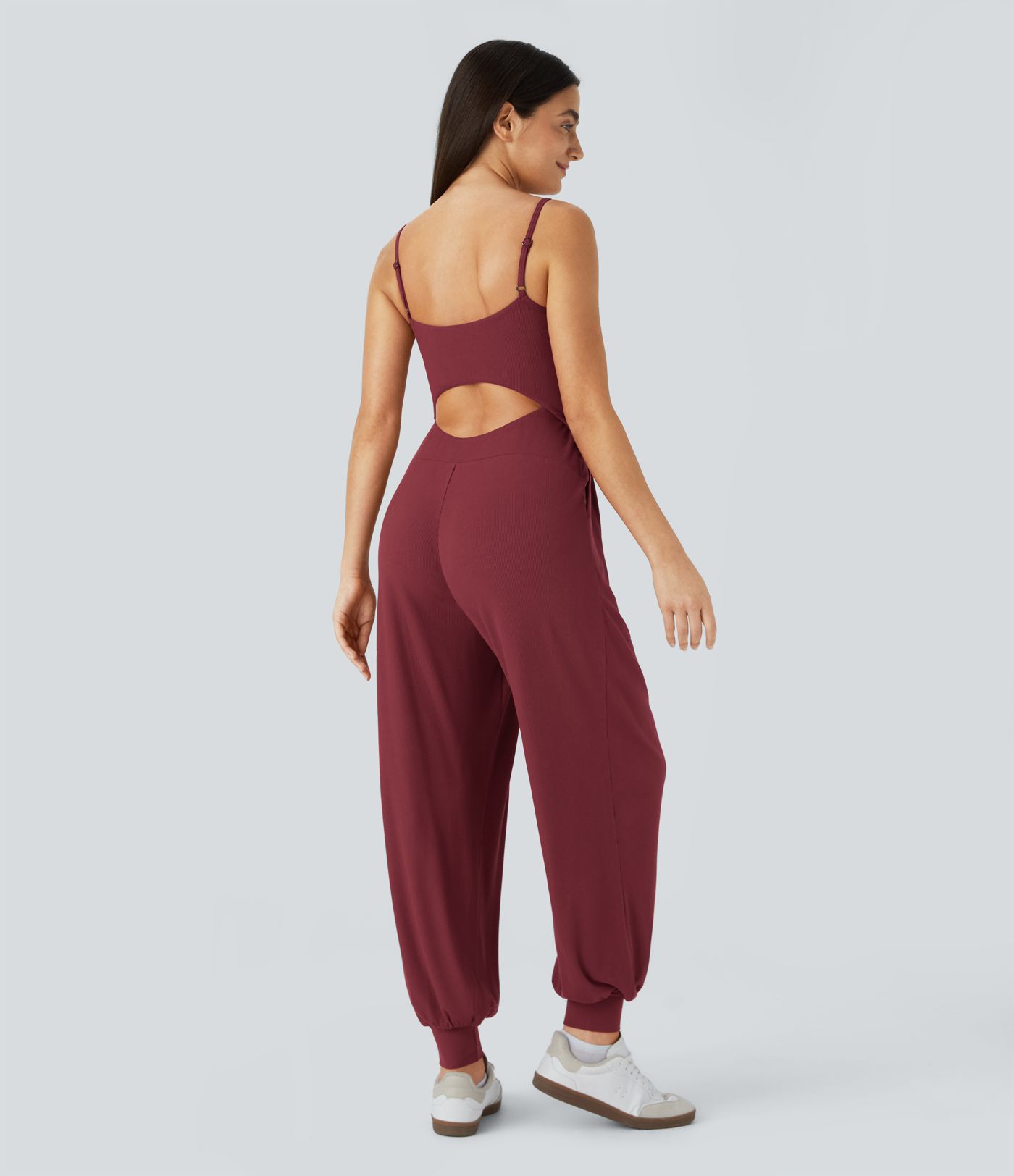 Ribbed Knit Cut Out Pocket Casual Jogger Jumpsuit