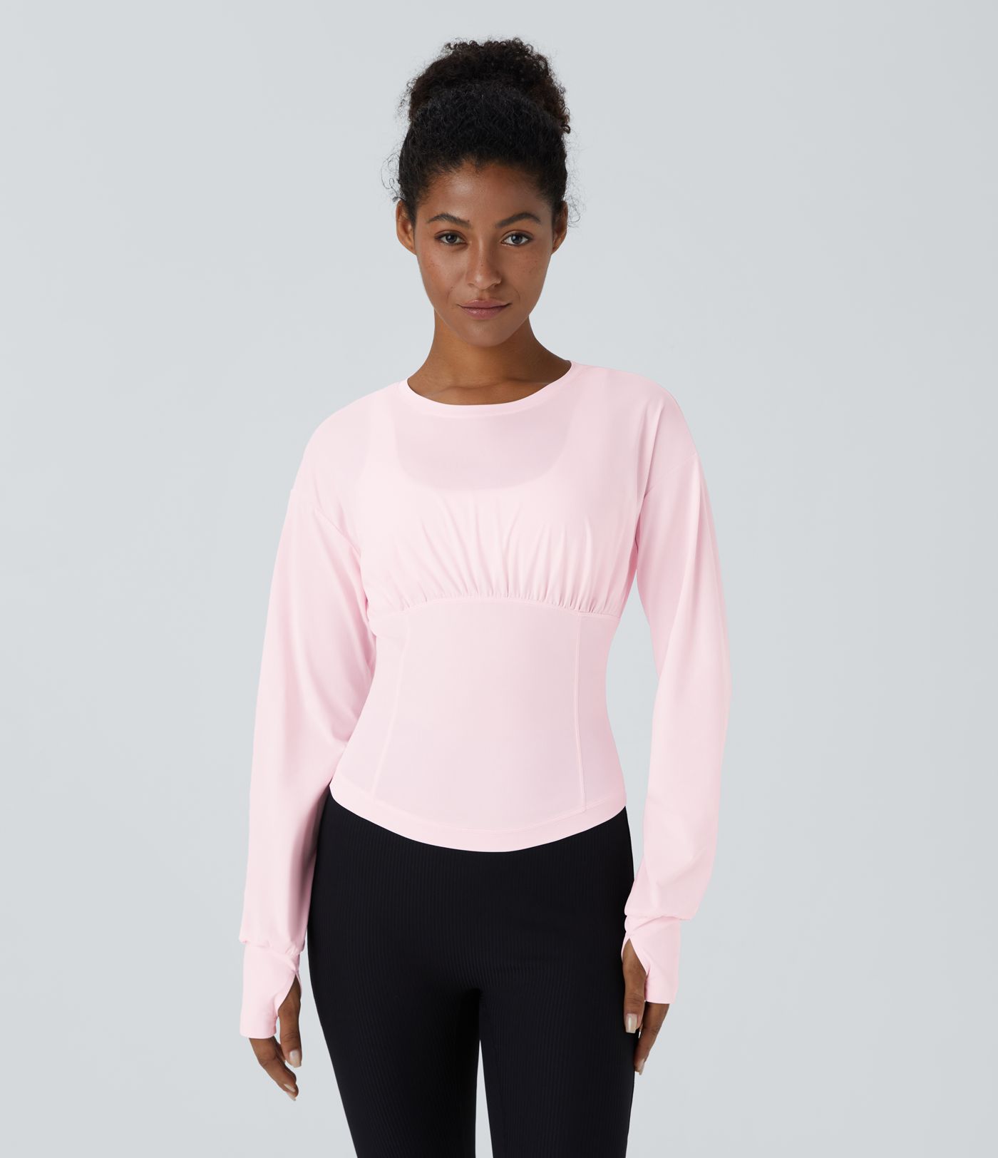 Round Neck Thumb Hole Slim Yoga Sports Top