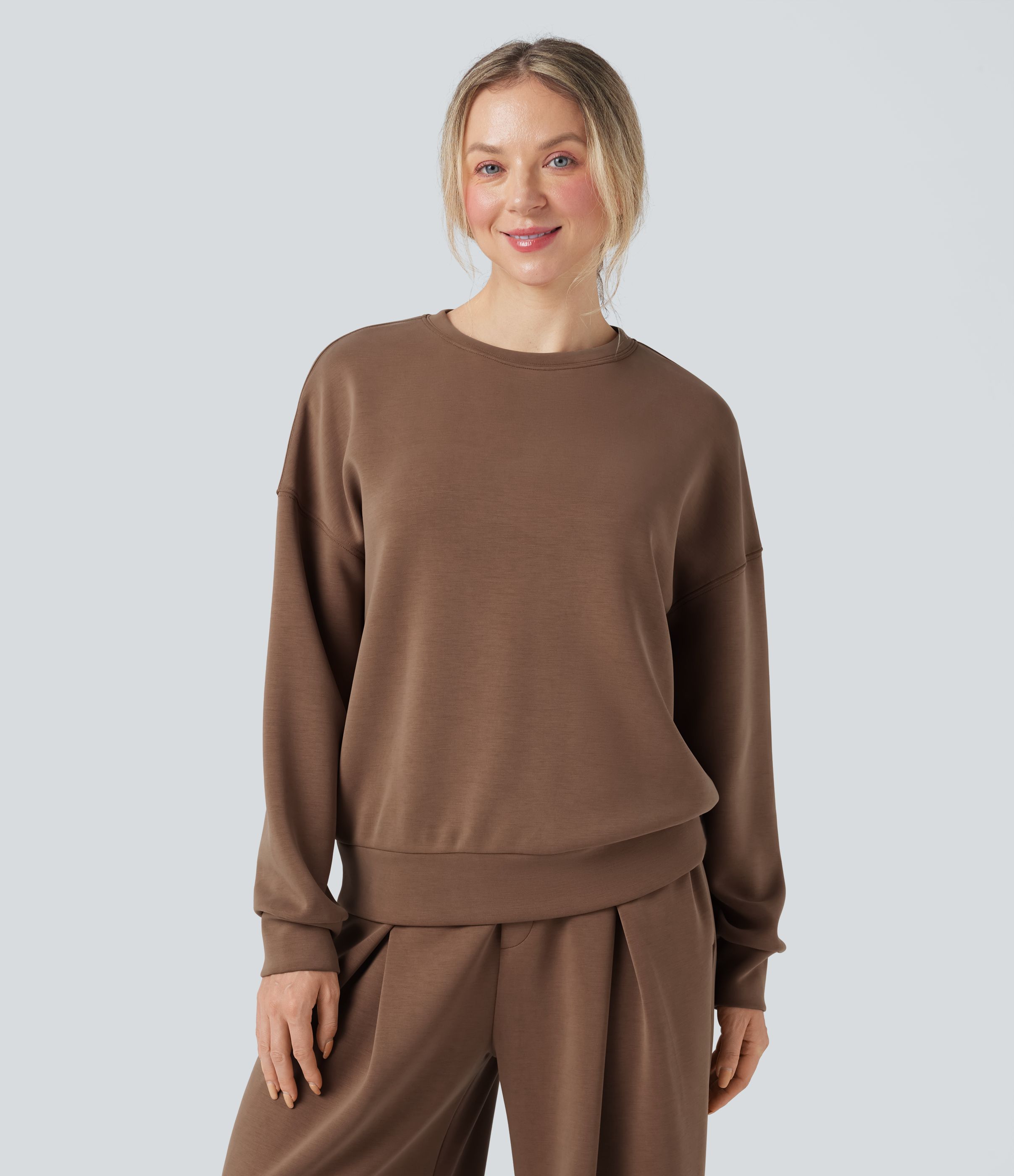 SpacerTek™ Rounded Neckline Long Sleeve Crossover Back Casual Sweatshirt