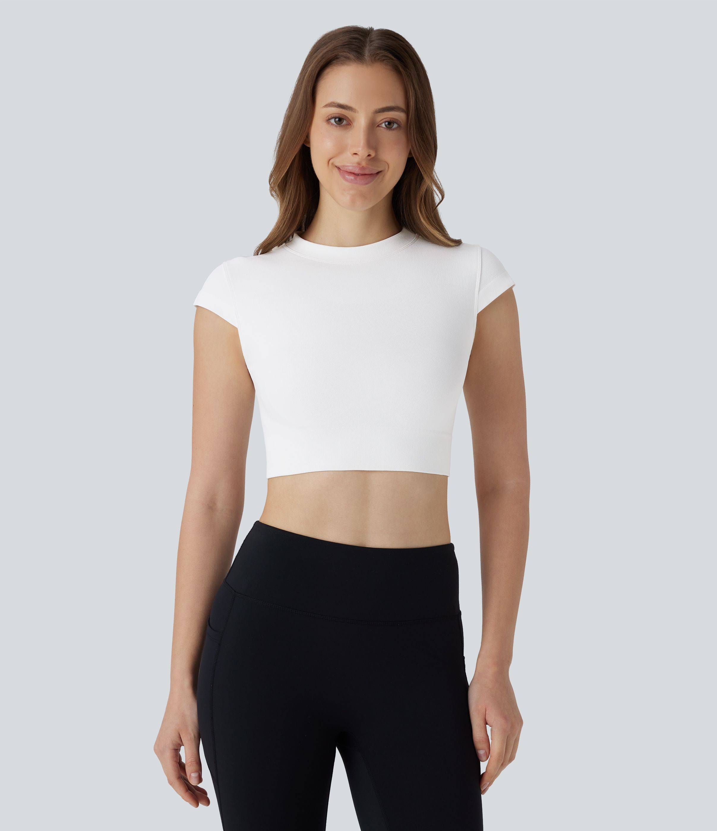 OneForm Seamless Flow Round Neck Cap Sleeve Cropped Yoga Sports Top