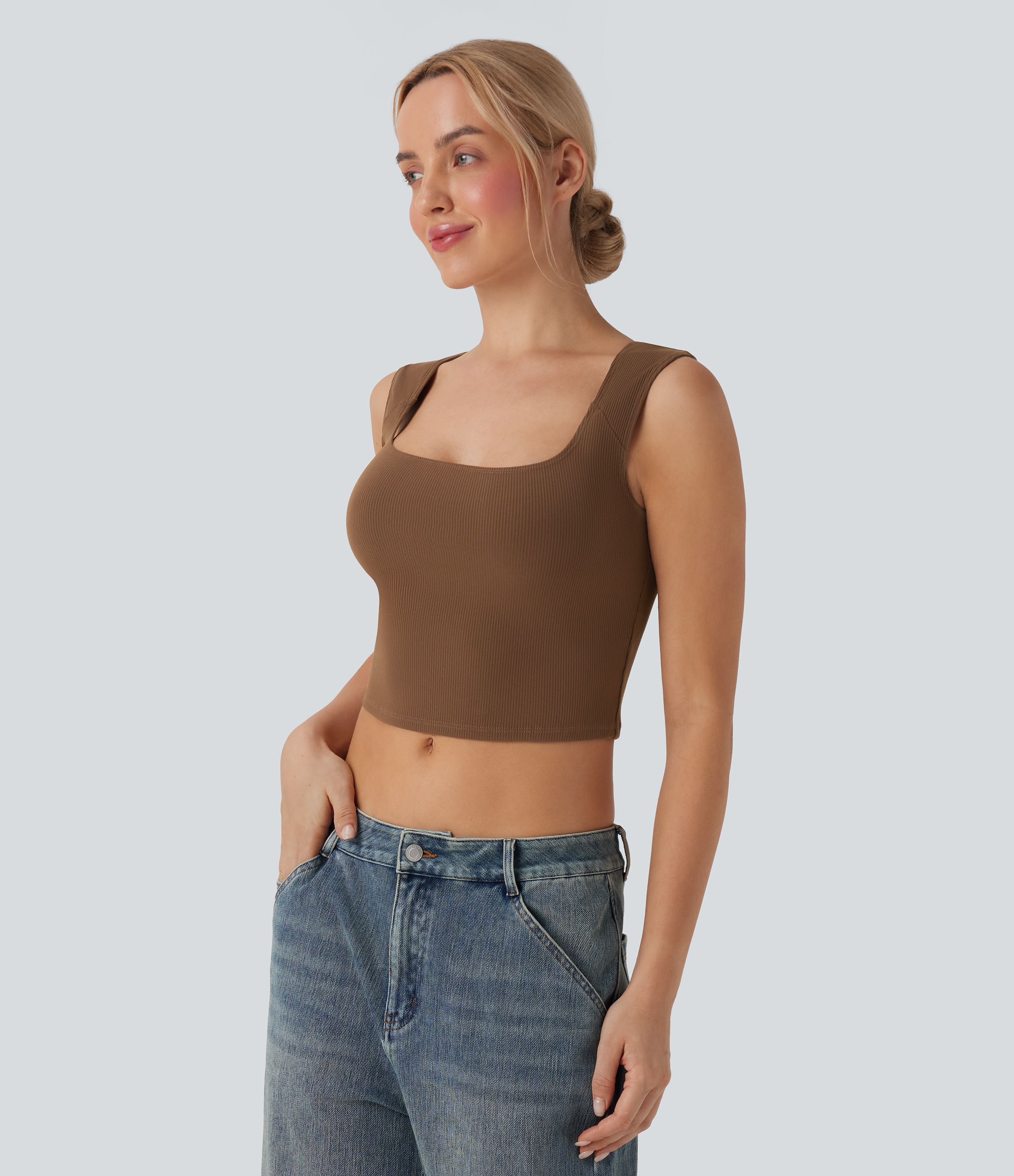 SoftlyZero™ Ribbed U Neck Cropped Casual Tank Top